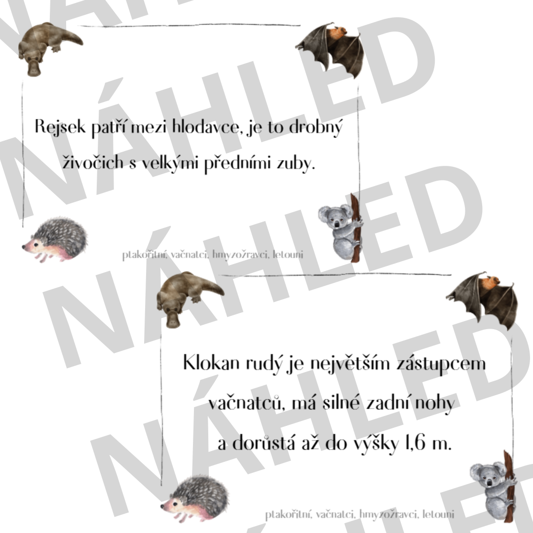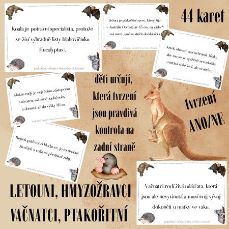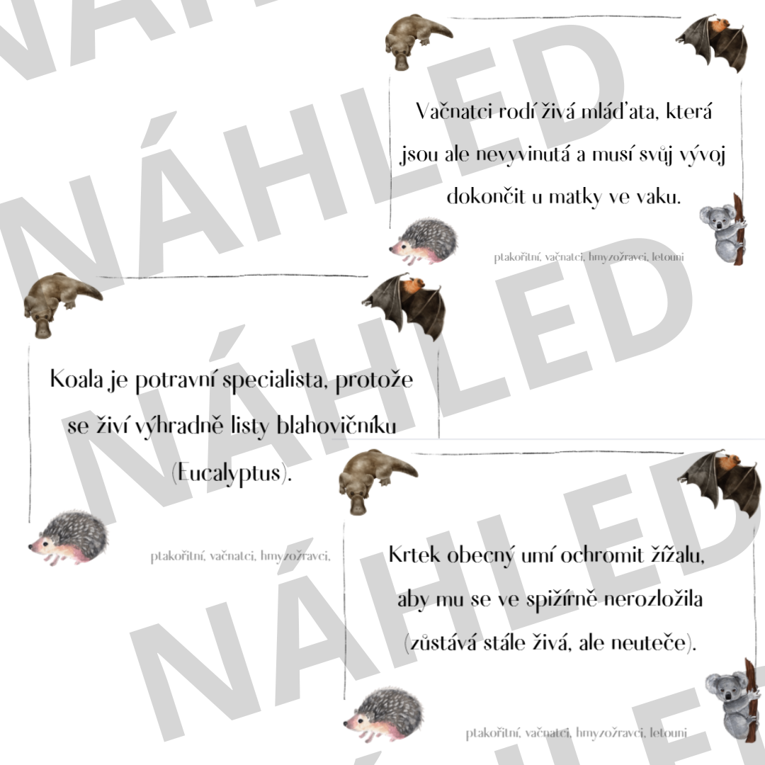 - Oboustranné karty s informací o savcích, děti určují, jestli je pravdivá nebo není (na druhé straně kontrola - ANO / NE).