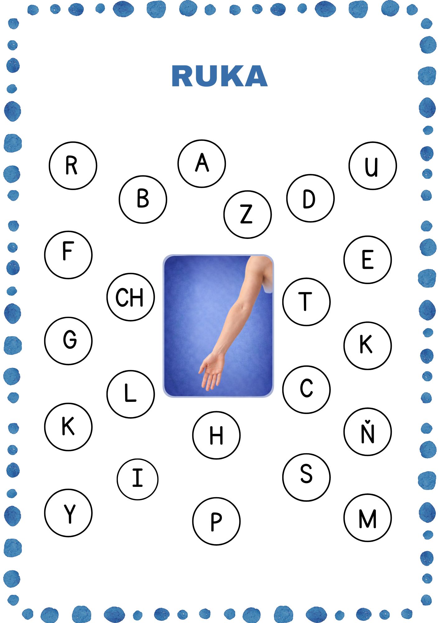 - 10 stran s vyhledáváním písmen ve slově (části těla)
