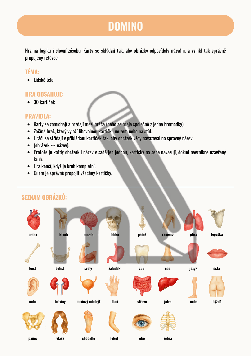 Hra na logiku i slovní zásobu. Karty se skládají tak, aby obrázky odpovídaly názvům, a vznikl tak správně propojený řetězec.
