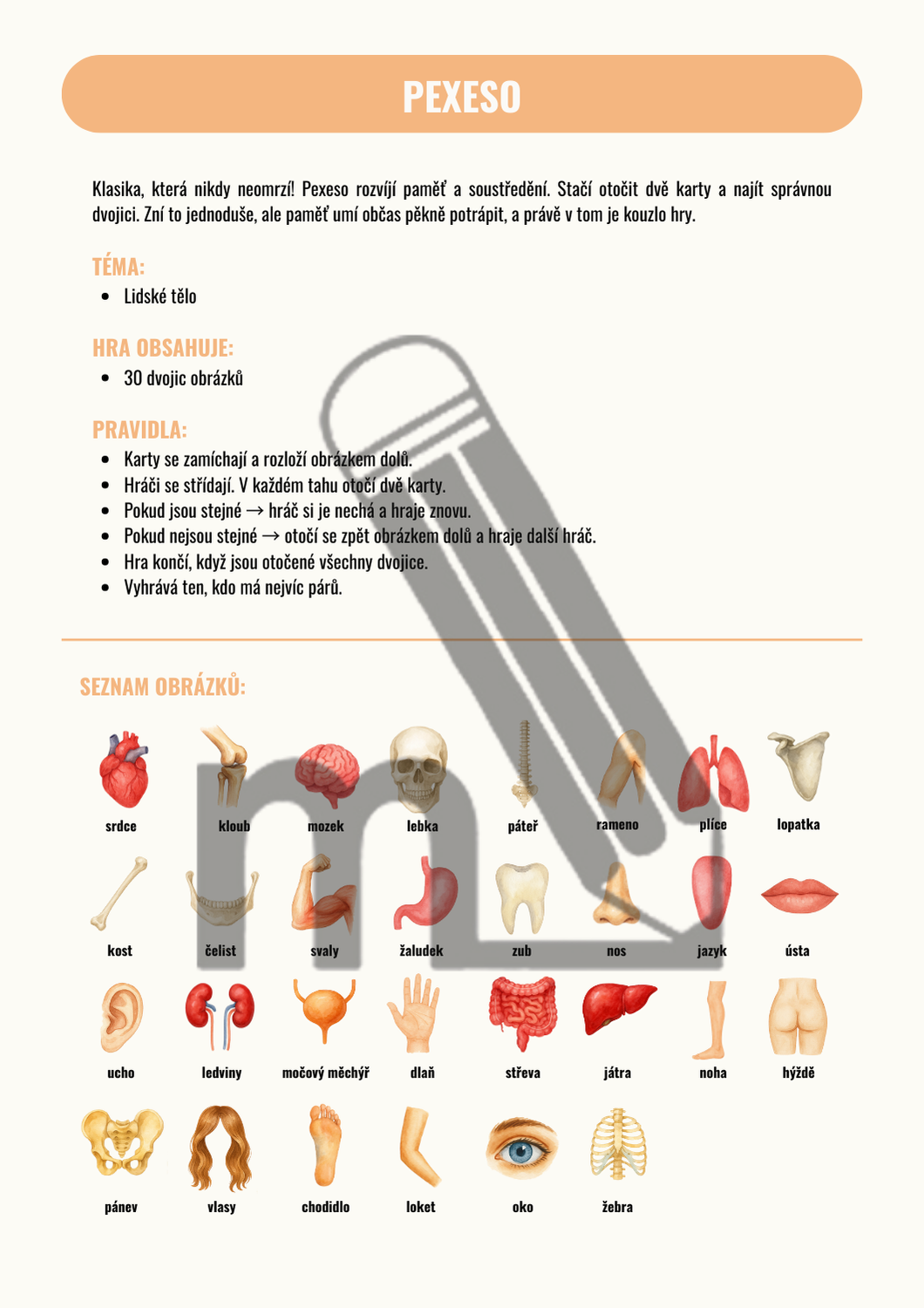Klasika, která nikdy neomrzí! Pexeso rozvíjí paměť a soustředění. Stačí otočit dvě karty a najít správnou dvojici. Zní to jednoduše, ale paměť umí občas pěkně potrápit, a právě v tom je kouzlo hry.