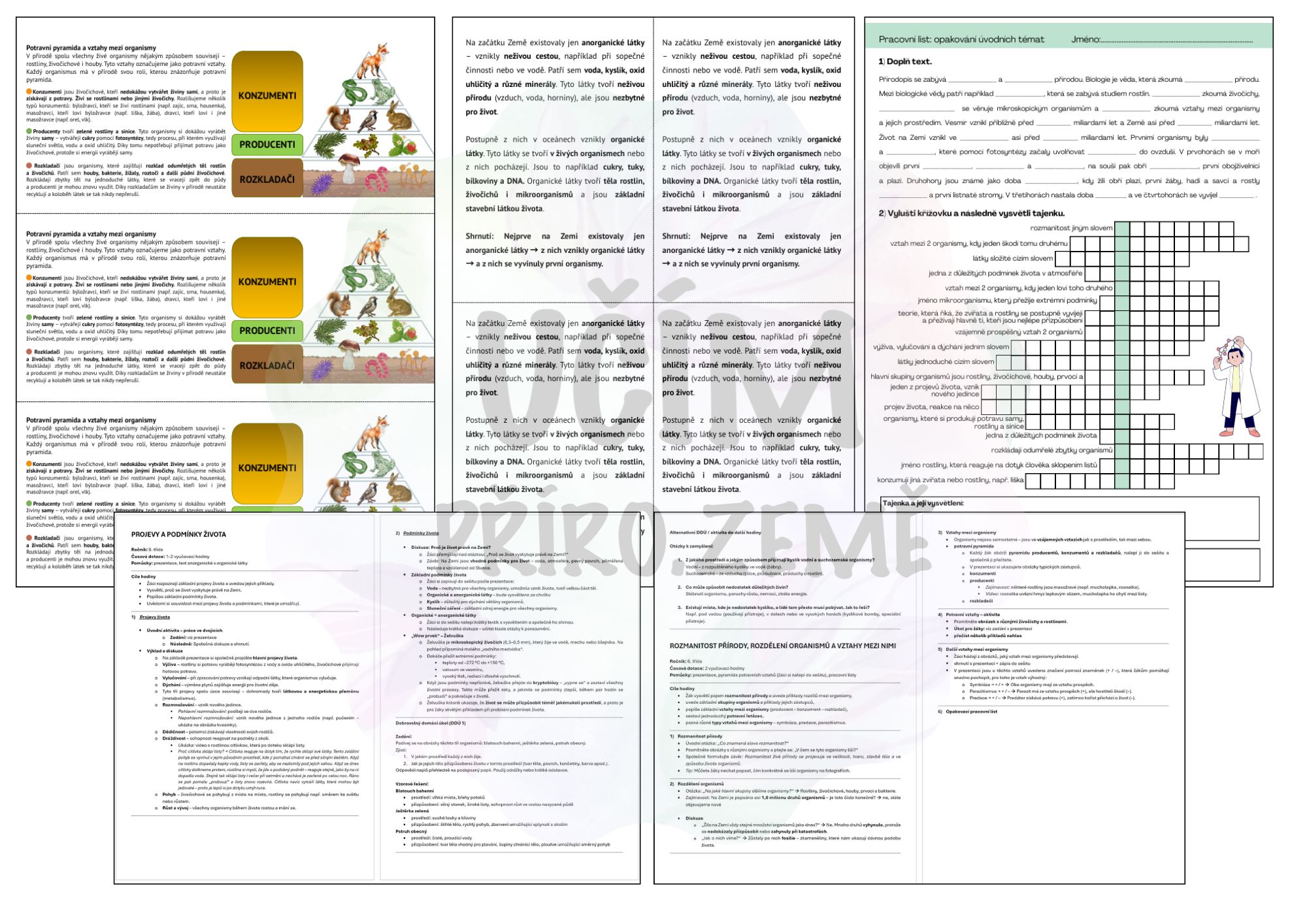 Materiál je ideální pro učitele, kteří chtějí mít kompletně připravené čtyři hodiny na úvodní kapitoly přírodopisu.