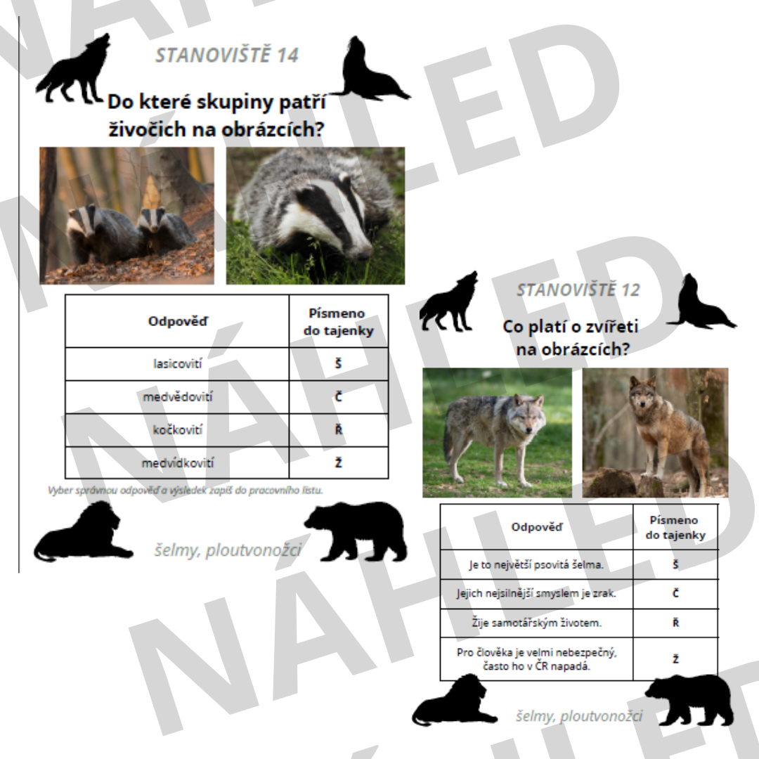 - stanoviště i pracovní listy jsou ve dvou velikostech pro tisk