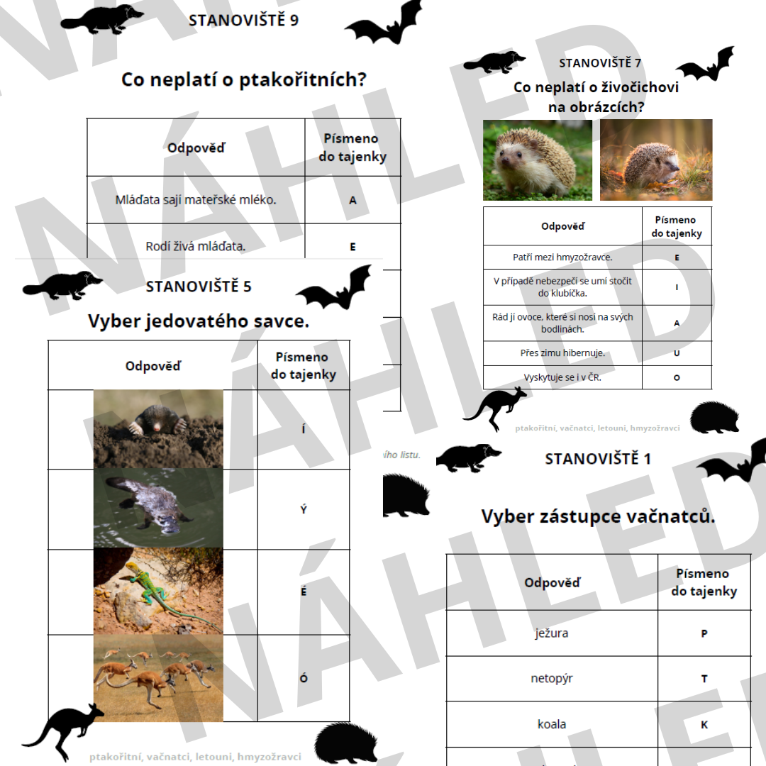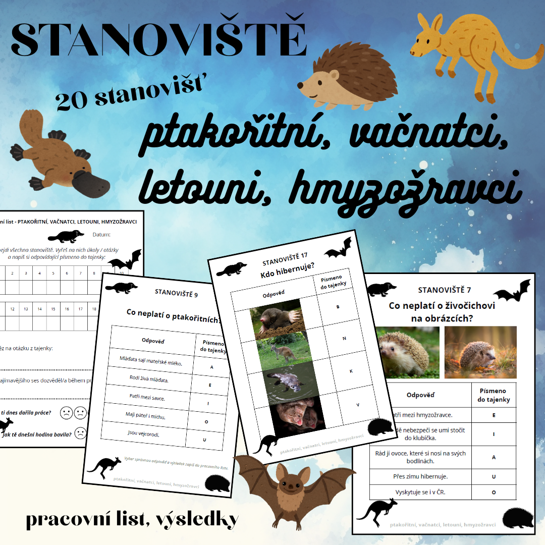 STANOVIŠTĚ (ptakořitní, vačnatci, letouni, hmyzožravci)