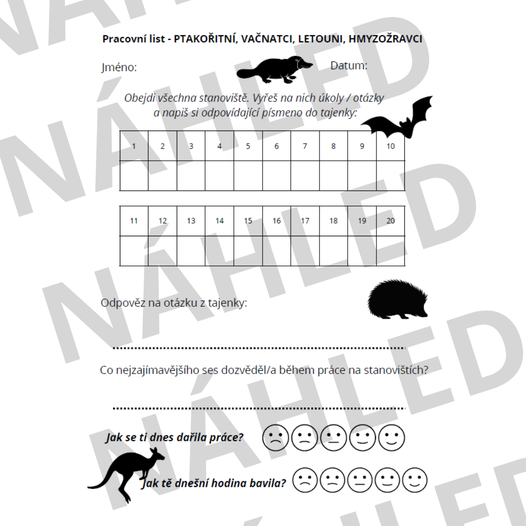 - stanoviště i pracovní listy jsou ve dvou velikostech pro tisk