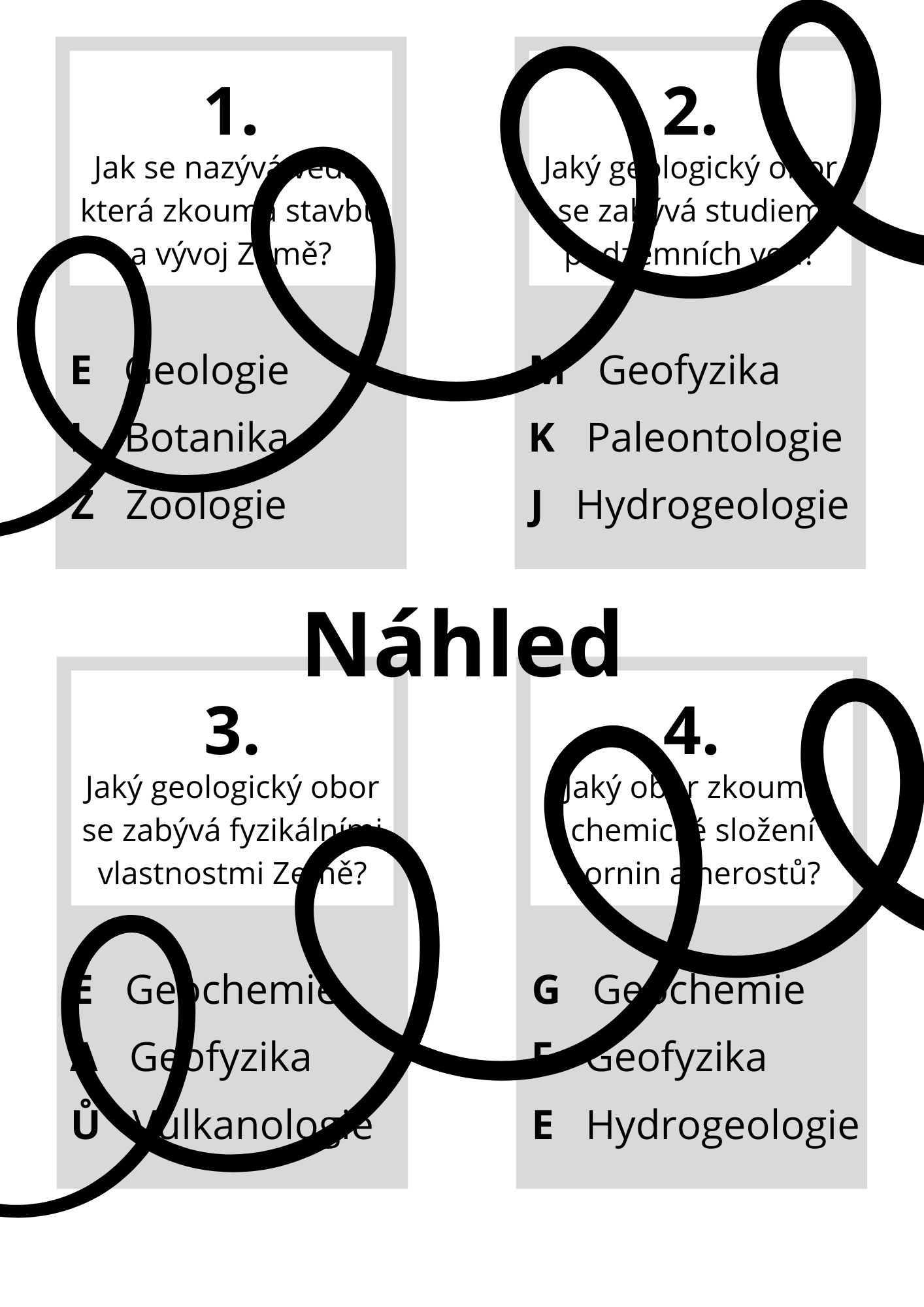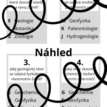 14 Karet s Otázkami: Každá karta obsahuje jednu otázku a sadu odpovědí, z nichž každá je spojena s jedním písmenem. Karty stačí vytisknout, nastříhat, zalaminovat a rozmístit po třídě.