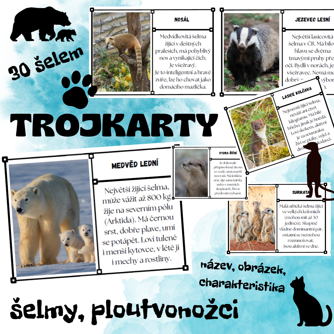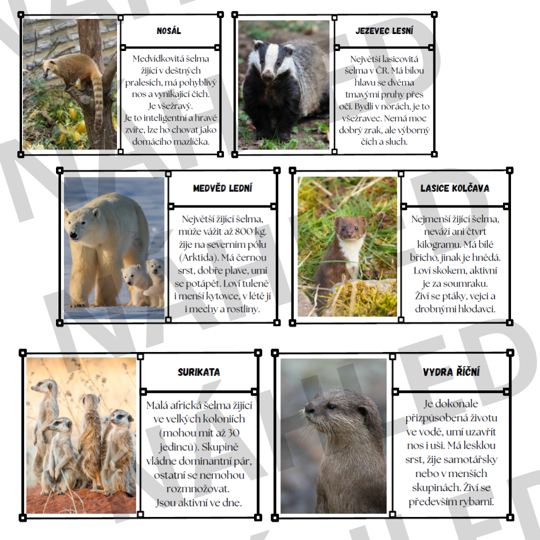 - děti hledají trojice (spojují jméno, obrázek a charakteristiku šelmy)