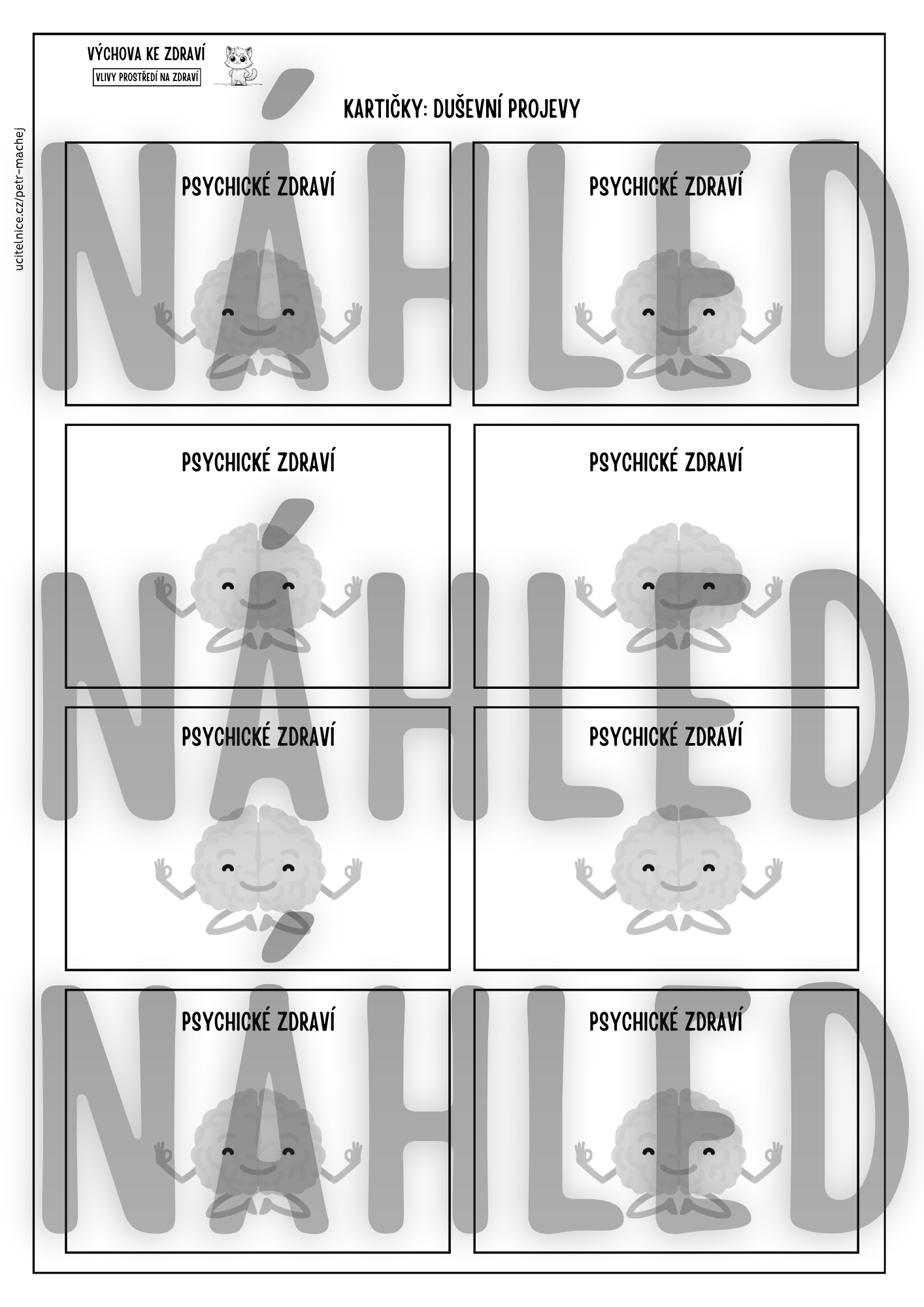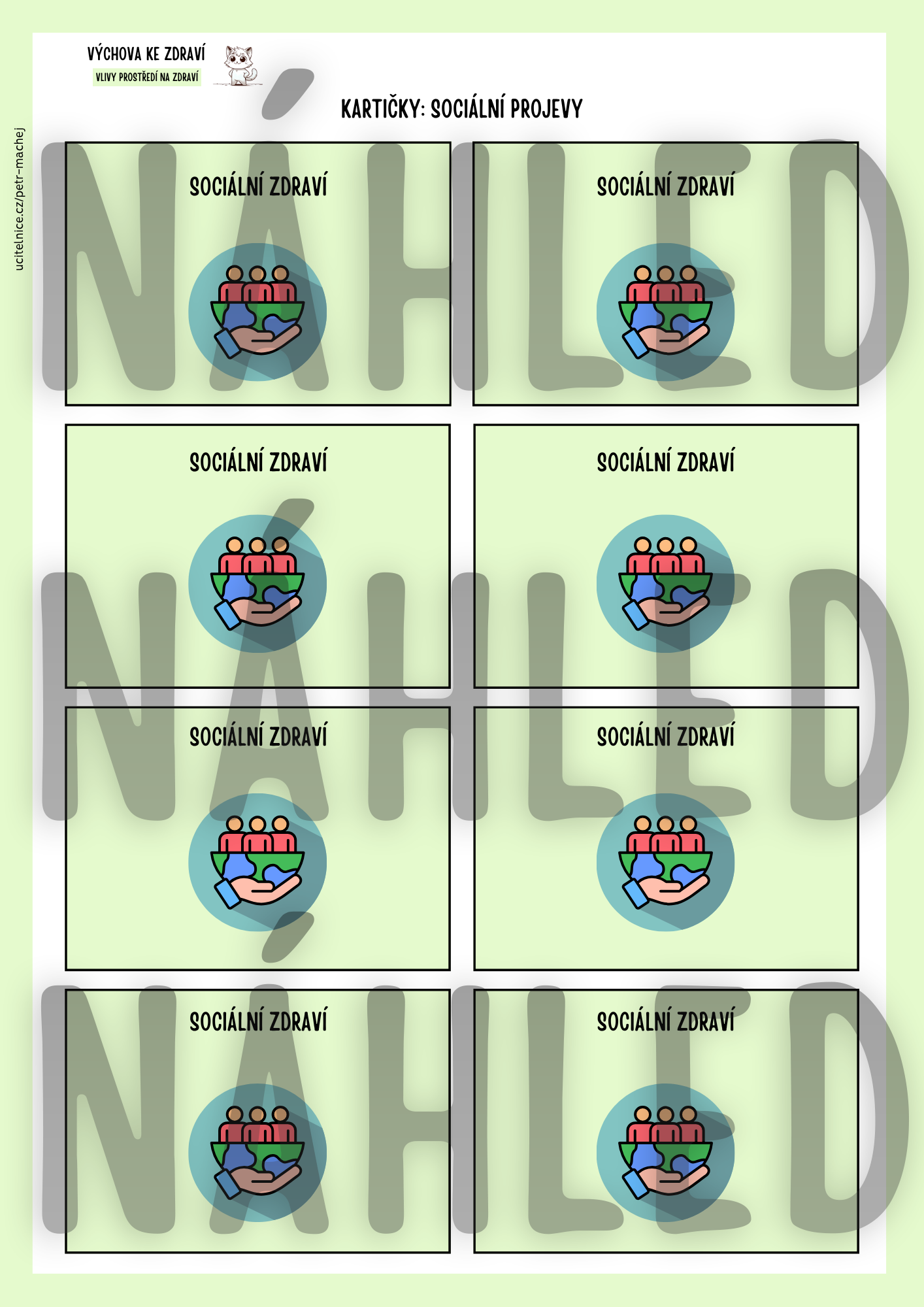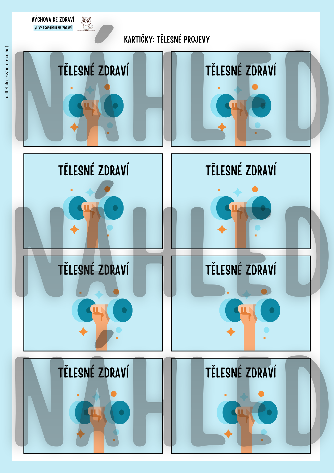 - předpřipravené kartičky s různými projevy v oblasti fyzického, psychického a sociálního zdraví