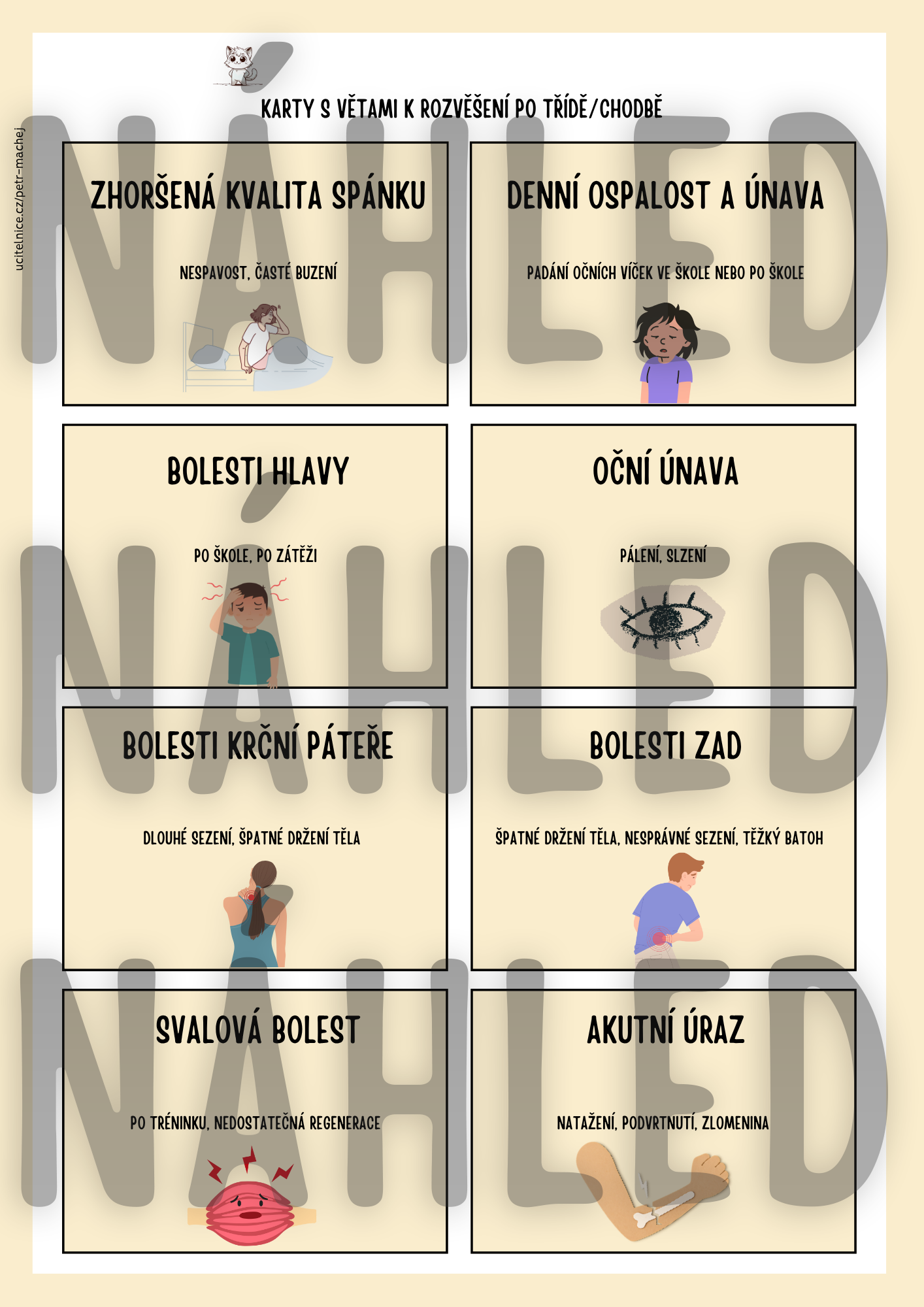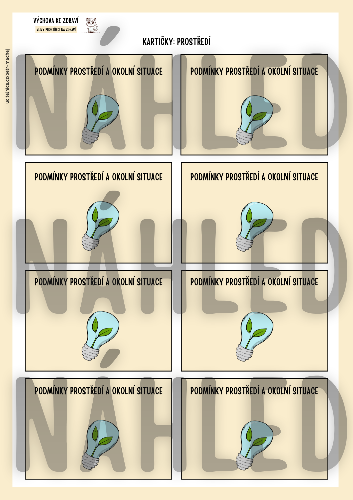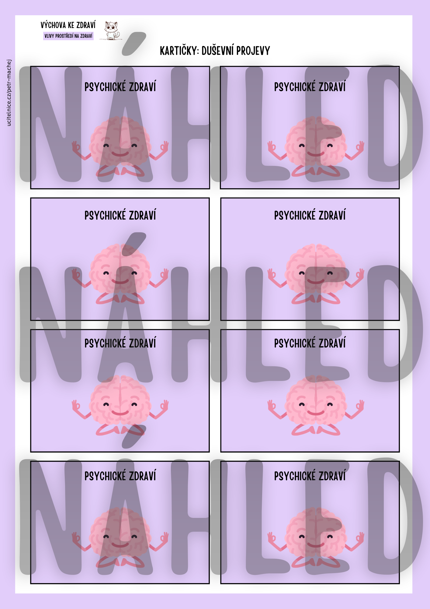 - předpřipravené kartičky s různými projevy v oblasti fyzického, psychického a sociálního zdraví