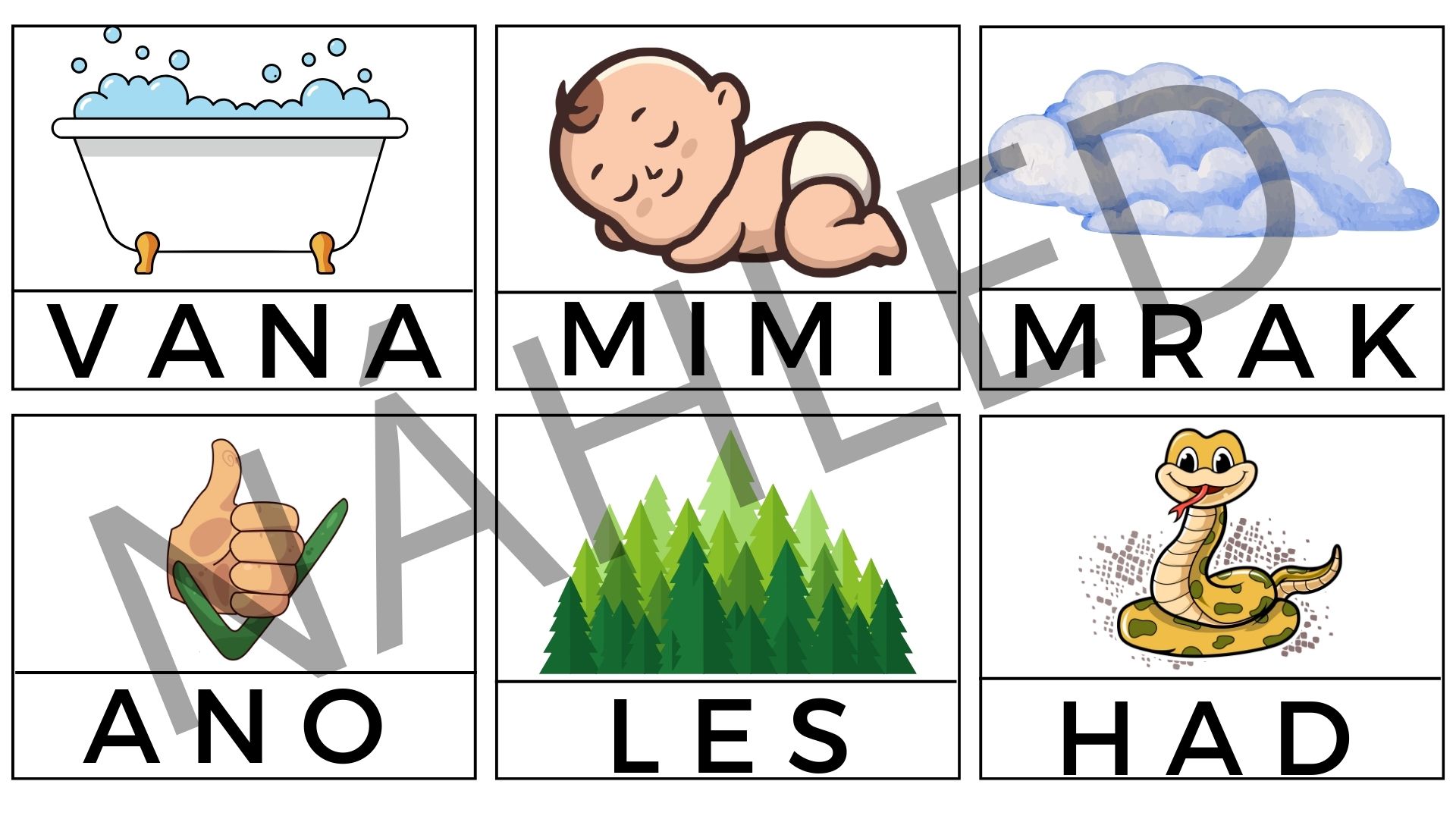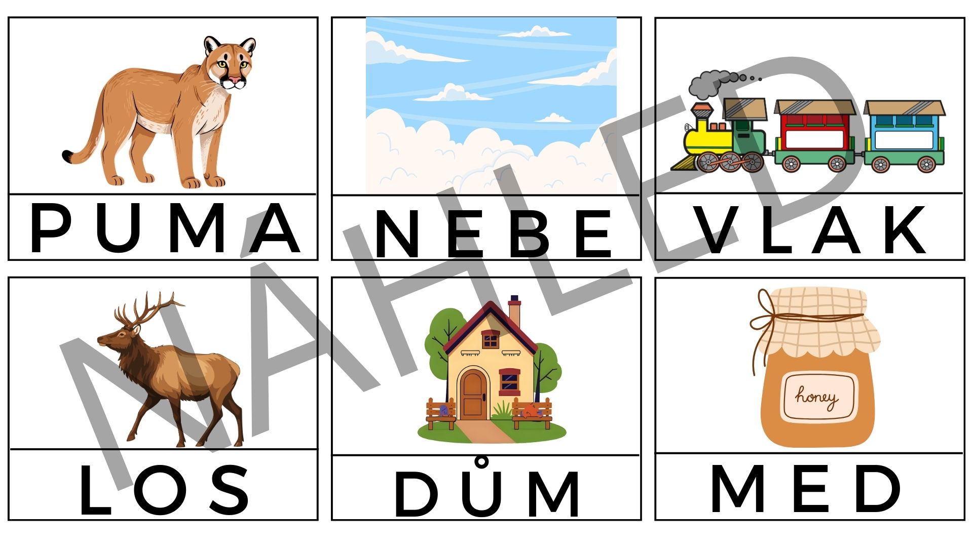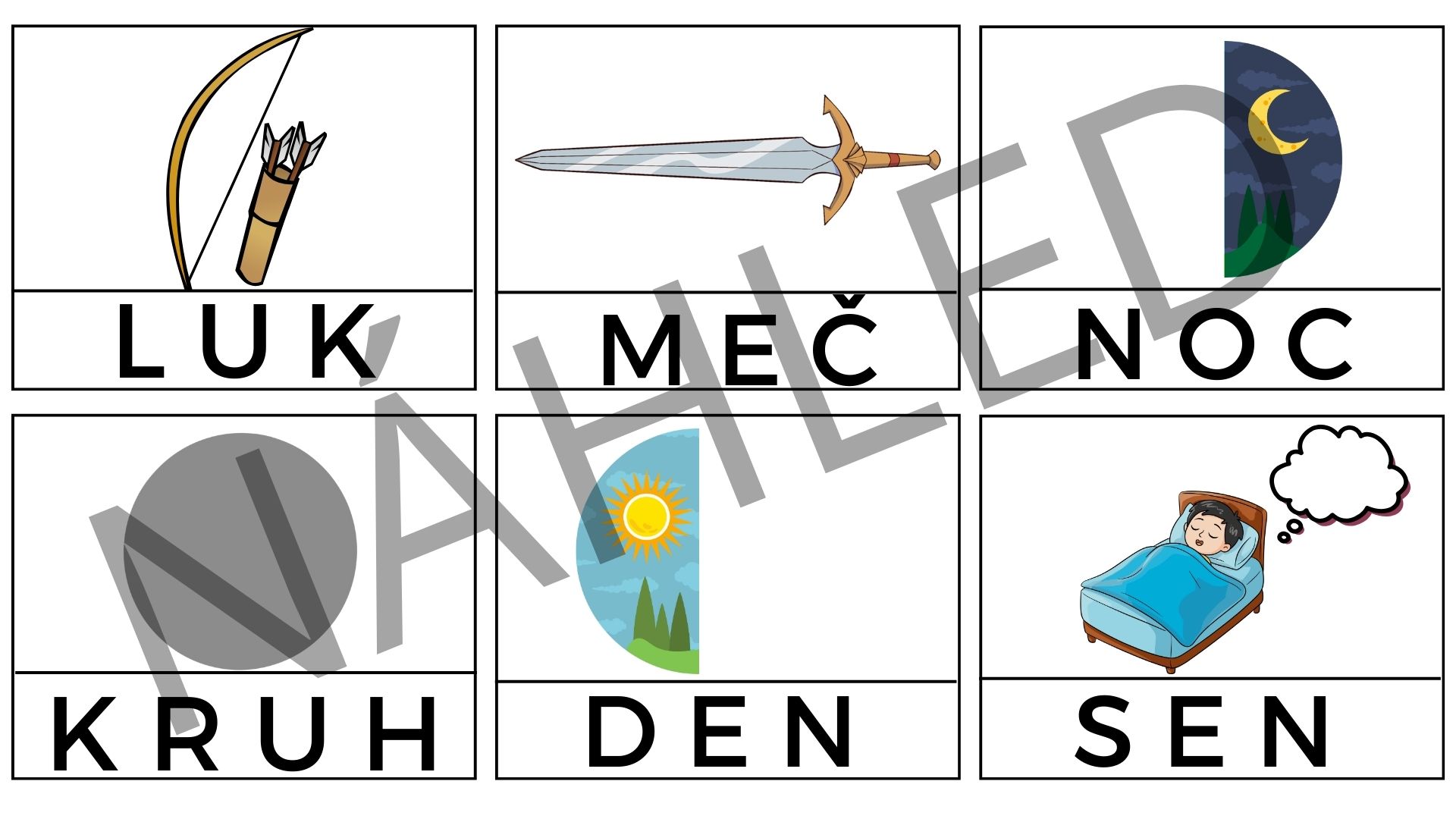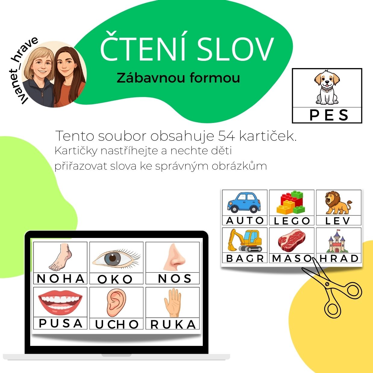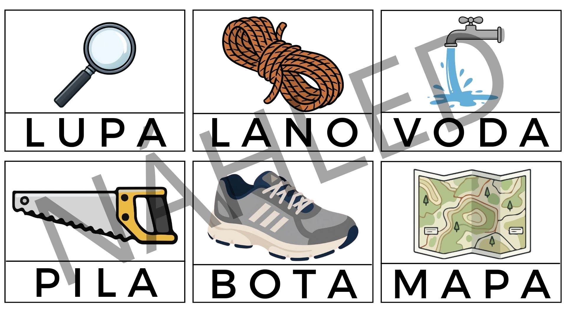 V souboru naleznete 54 kartiček. Nejprve nastříháte kartičky a ponecháte slova u obrázků, aby si děti mohly snadněji přiřadit slovo k obrázku. Poté odstřihněte slova a nechte děti, aby přiřazovaly slovíčka ke správným obrázkům.
