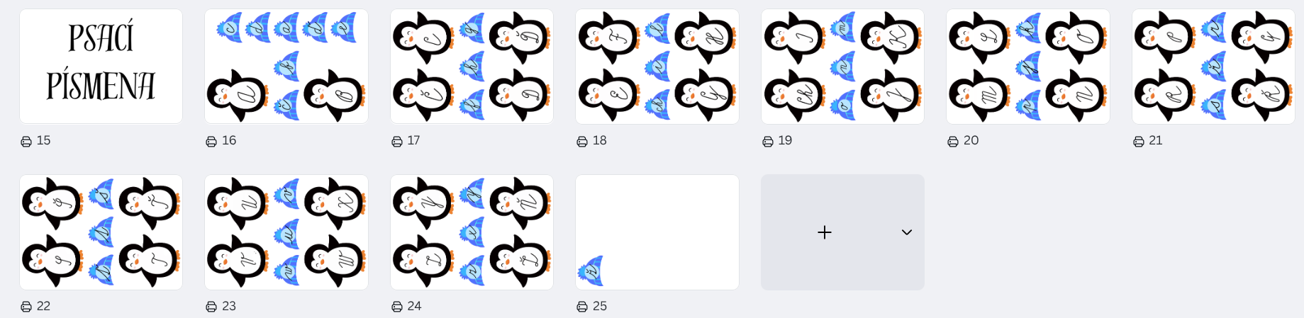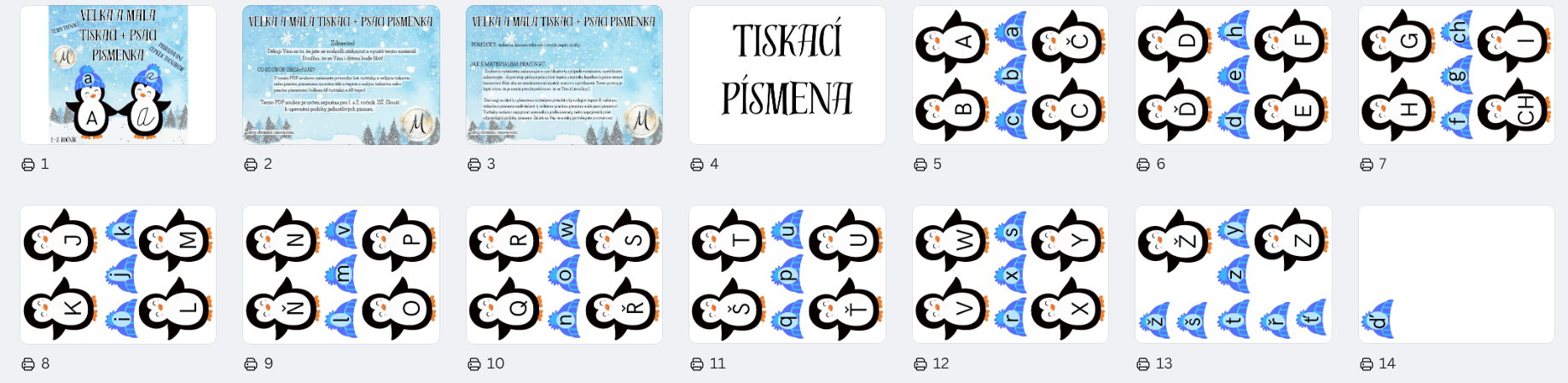 - tučňáky s velkým tiskacím nebo psacím písmenem na svém těle