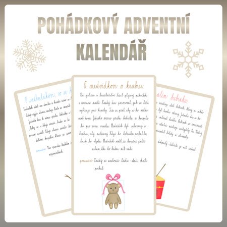Představte si adventní čas, ve kterém každý den otevřete dveře do nového pohádkového světa. Tento originální adventní kalendář nabízí 24 ručně psaných pohádek s ponaučením, které děti provedou laskavými příběhy o přátelství, odvaze, radosti i obyčejných maličkostech všedního dne.