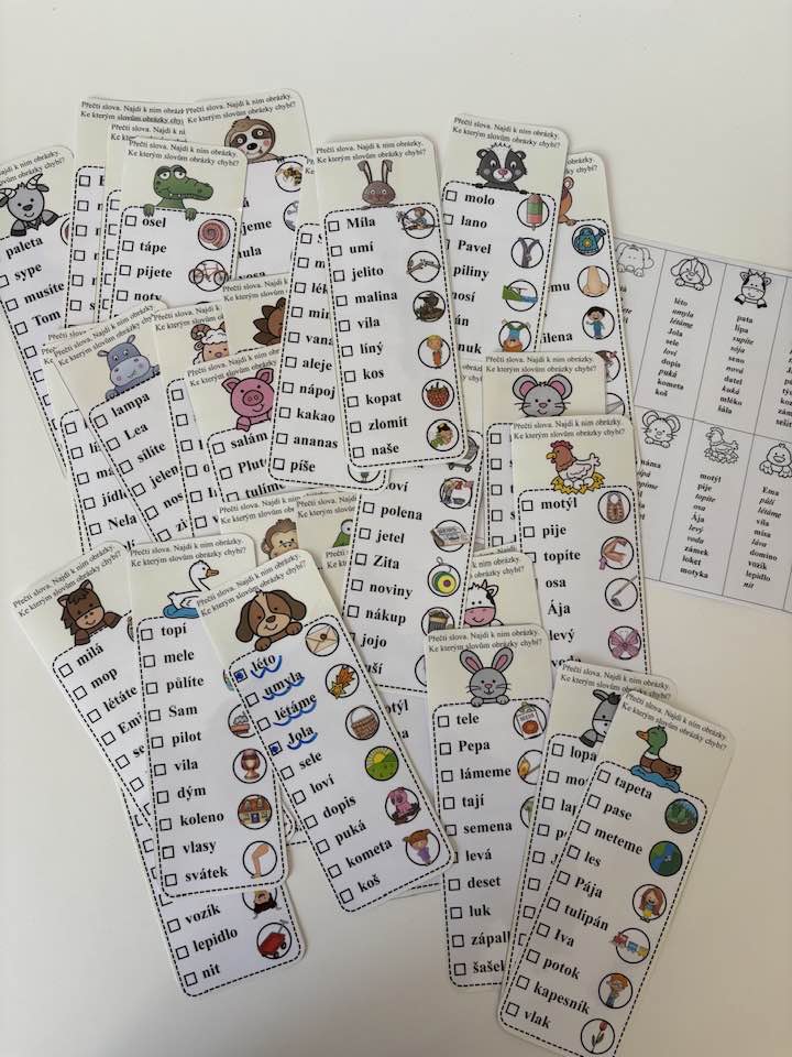 „Čtecí karty se slovy pro prvňáčky promění obyčejné čtení v malou misi – čti, hledej obrázky, škrtni, oprav a jedeme dál.“
