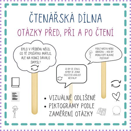 - Hodí se pro individuální čtení, práci ve dvojicích i skupinovou diskuzi. Jedná se o ideální pomůcku do čtenářských dílen nejen na 1. stupni ZŠ. Pomáhají dětem přemýšlet o textu, klást si otázky