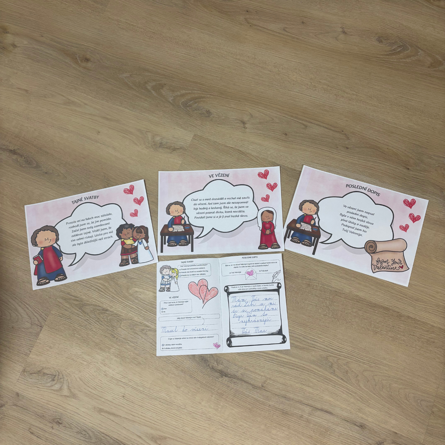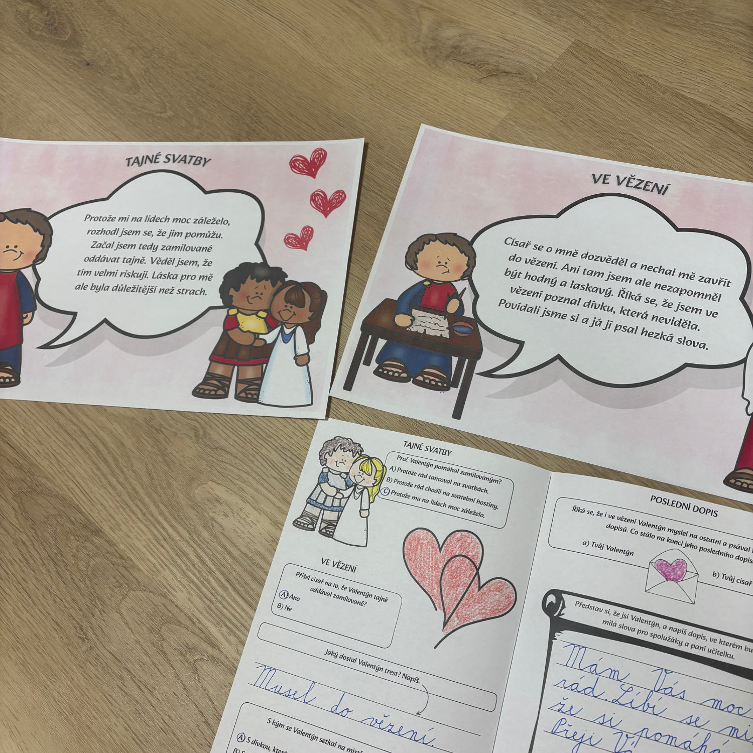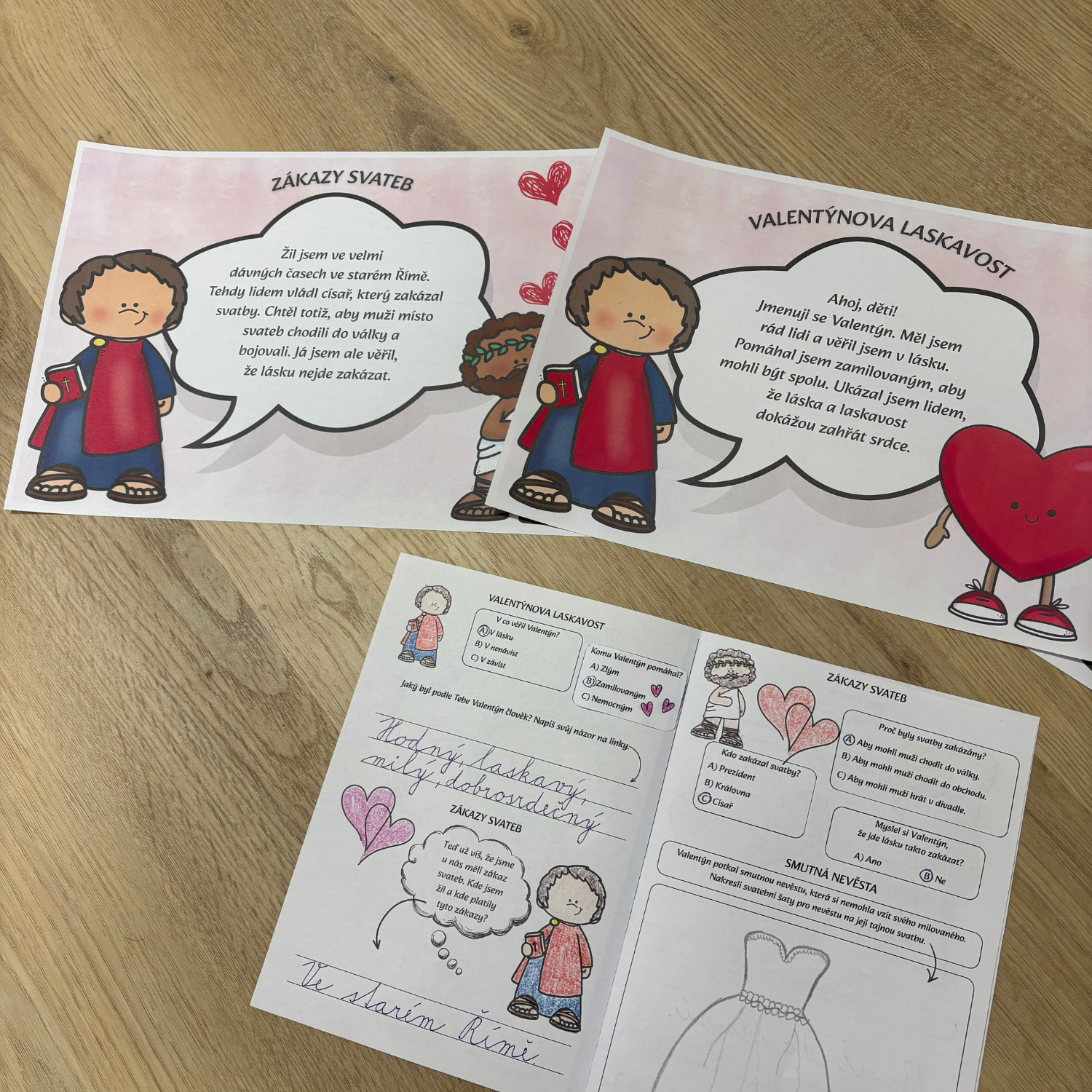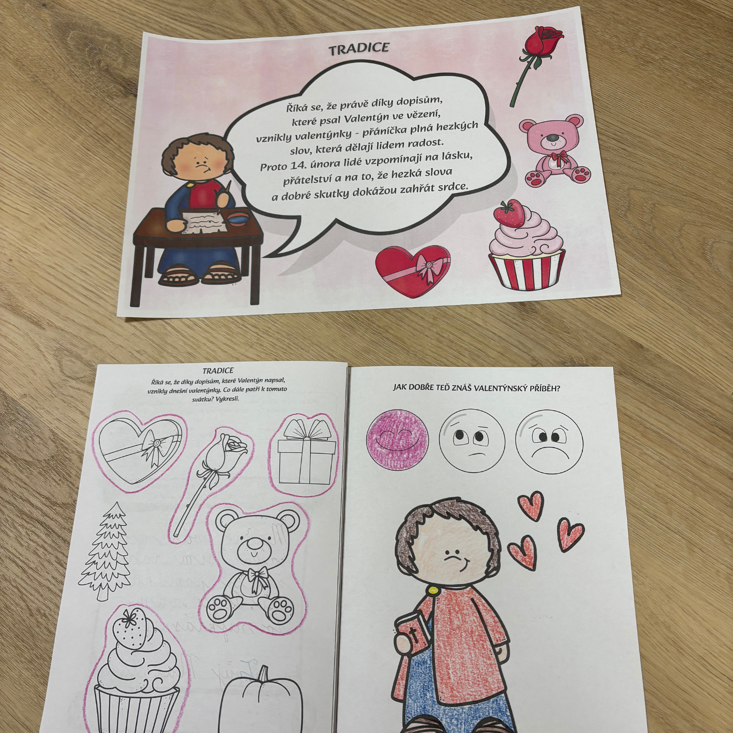 Na jednotlivých stanovištích se děti seznamují s krátkými texty, které rozvíjejí jejich čtenářskou gramotnost, seznamují je s významem svátku sv. Valentýna. Ve skládací knížce žáci plní úkoly, které ověřují porozumění přečteného textu.