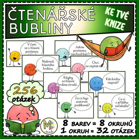 Tento jedinečný soubor ČTENÁŘSKÉ BUBLINY - 256 otázek ke knihám je praktickou pomůckou pro učitele, rodiče i knihovníky, kteří chtějí děti přirozeně vést k porozumění textu a radosti ze čtení.