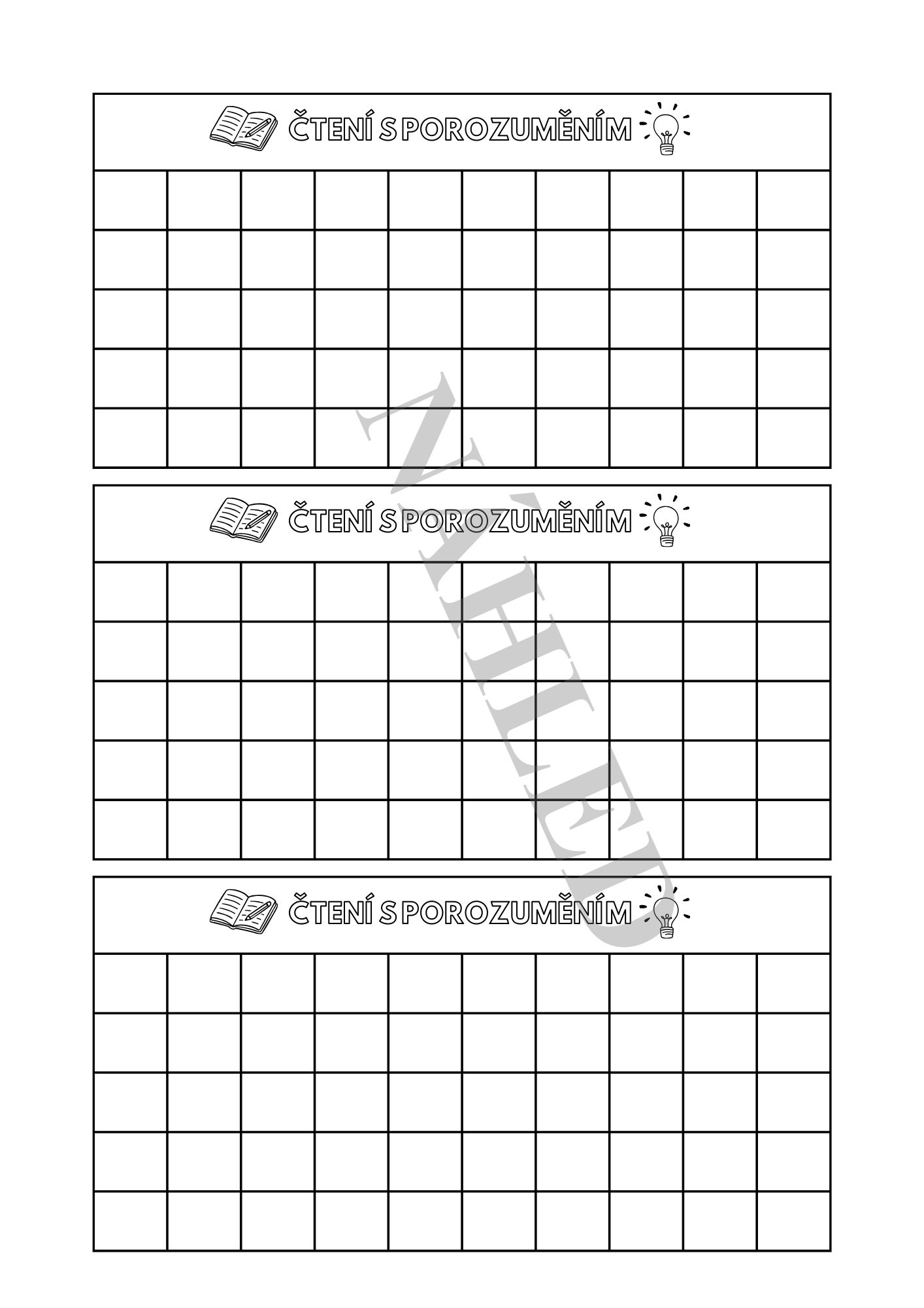 - Záznamový arch pro žáky – tabulka, do které si žáci zapisují číslo textu a své odpovědi.