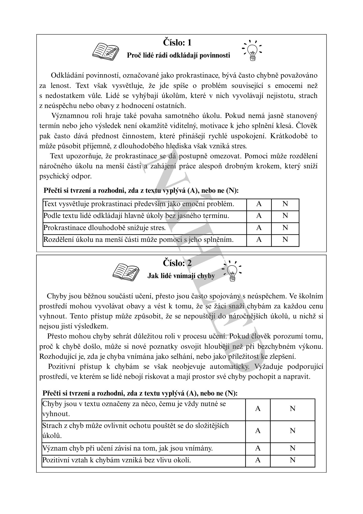 - Řešení – přehled správných odpovědí ve formátu A/N pro rychlou a přehlednou kontrolu.