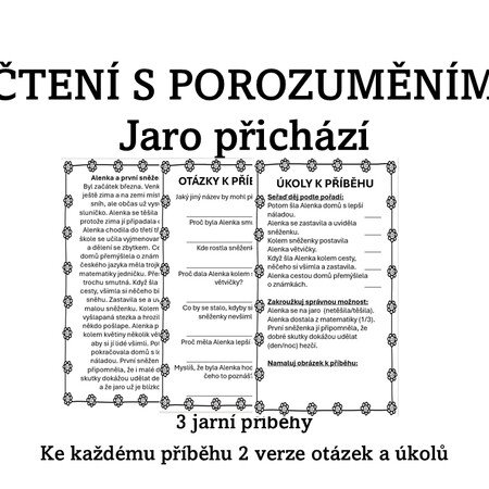 Materiál je určen pro rozvoj čtenářské gramotnosti ve 2.–3. ročníku ZŠ. Obsahuje tři krátké příběhy s otázkami a umožňuje rozdělení úkolů podle obtížnosti.
