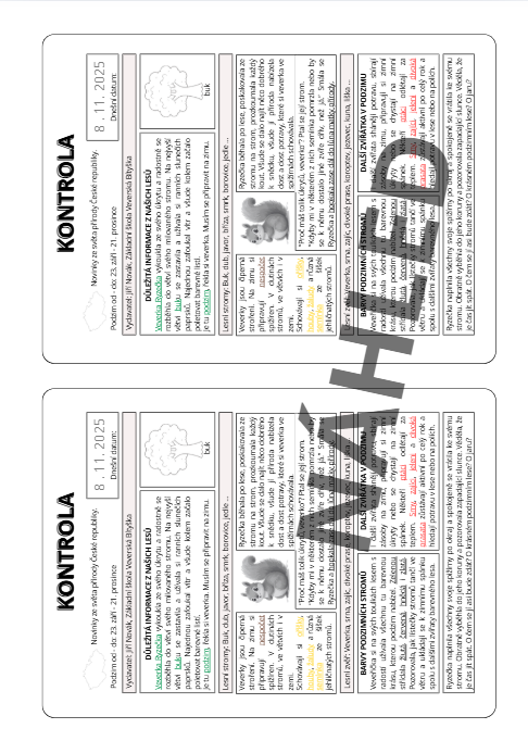 - Dále je zde přiloženo kontrolní vyhotovení s nímž žáci pracují ve druhém stupni.