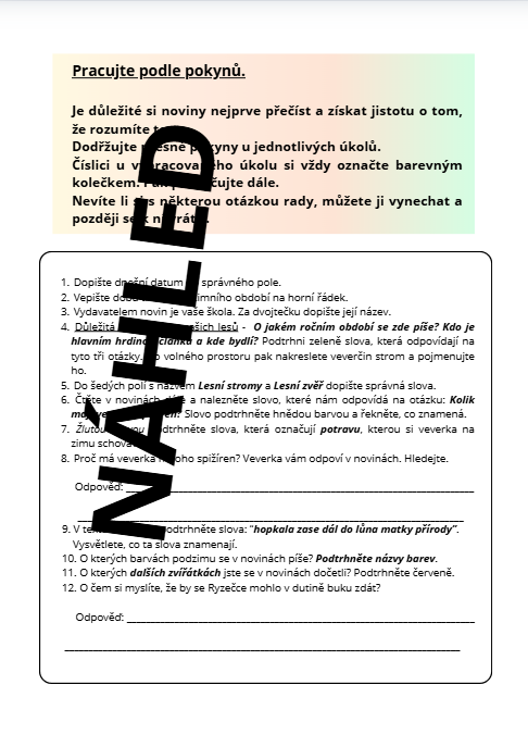 - "Interaktivní novinovou stránku" se kterou děti pracují dle konkrétních pokynů, zadání.