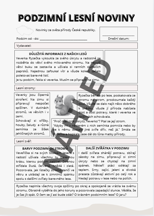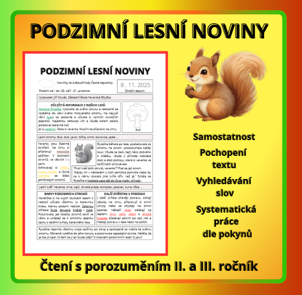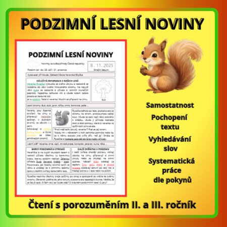 stáhněte si soubor, který může být dobrým pomocníkem při procvičování čtecích dovedností (čtení a pochopení obsahu textu) na podkresu podzimního tématu se zvířaty. Pomocníka lze tedy využít i v souvztažnosti s vhodným tématem v prvnouce nebo přírodovědě.