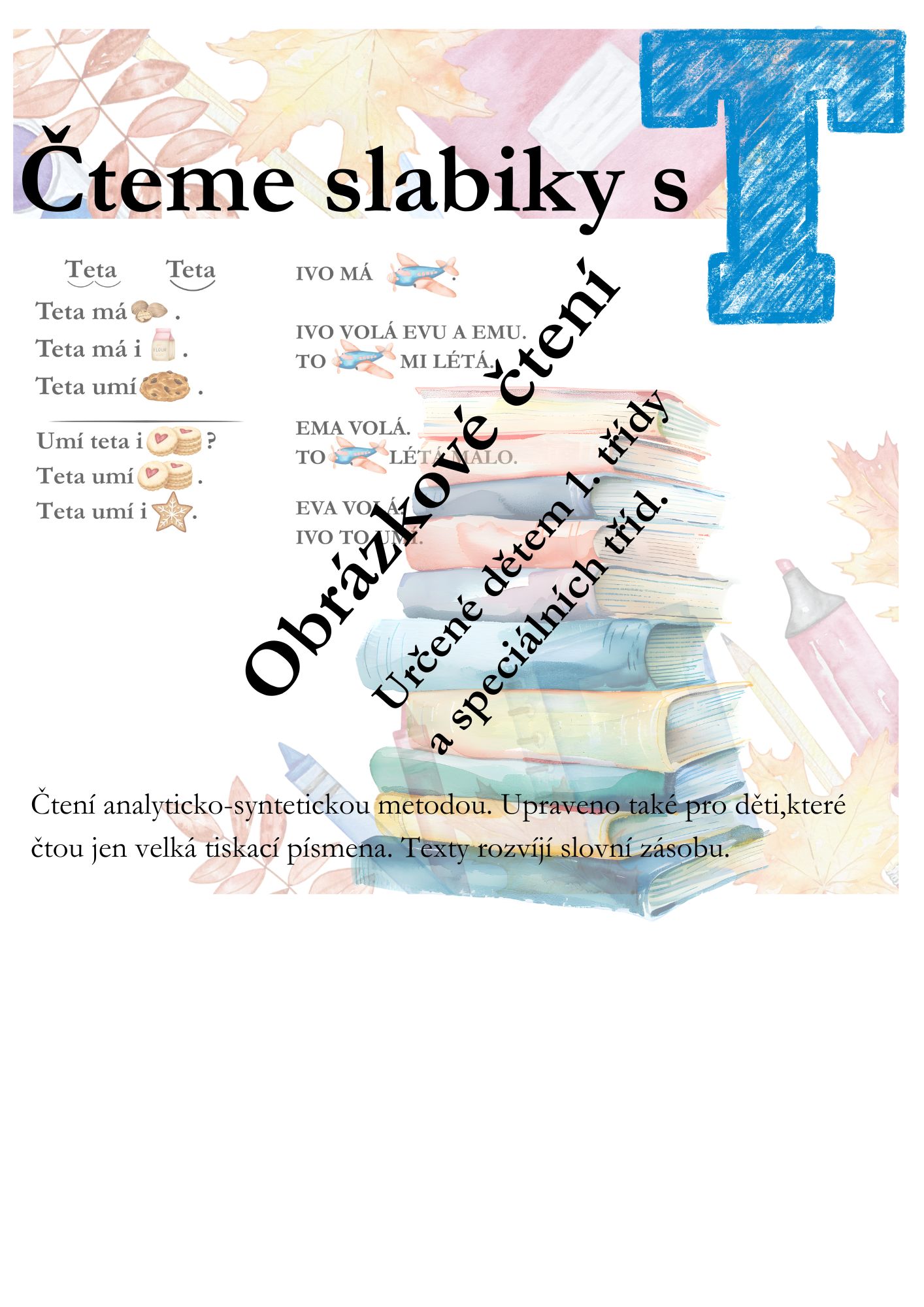 Krátké a srozumitelné texty vhodné pro výuku na speciálních školách. Pro žáky, kteří čtou jen velká tiskací písmena veškeré texty upraveny i do této formy. Texty jsou doplněné obrázky tak, aby zároveň rozvíjely slovní zásobu dětí.