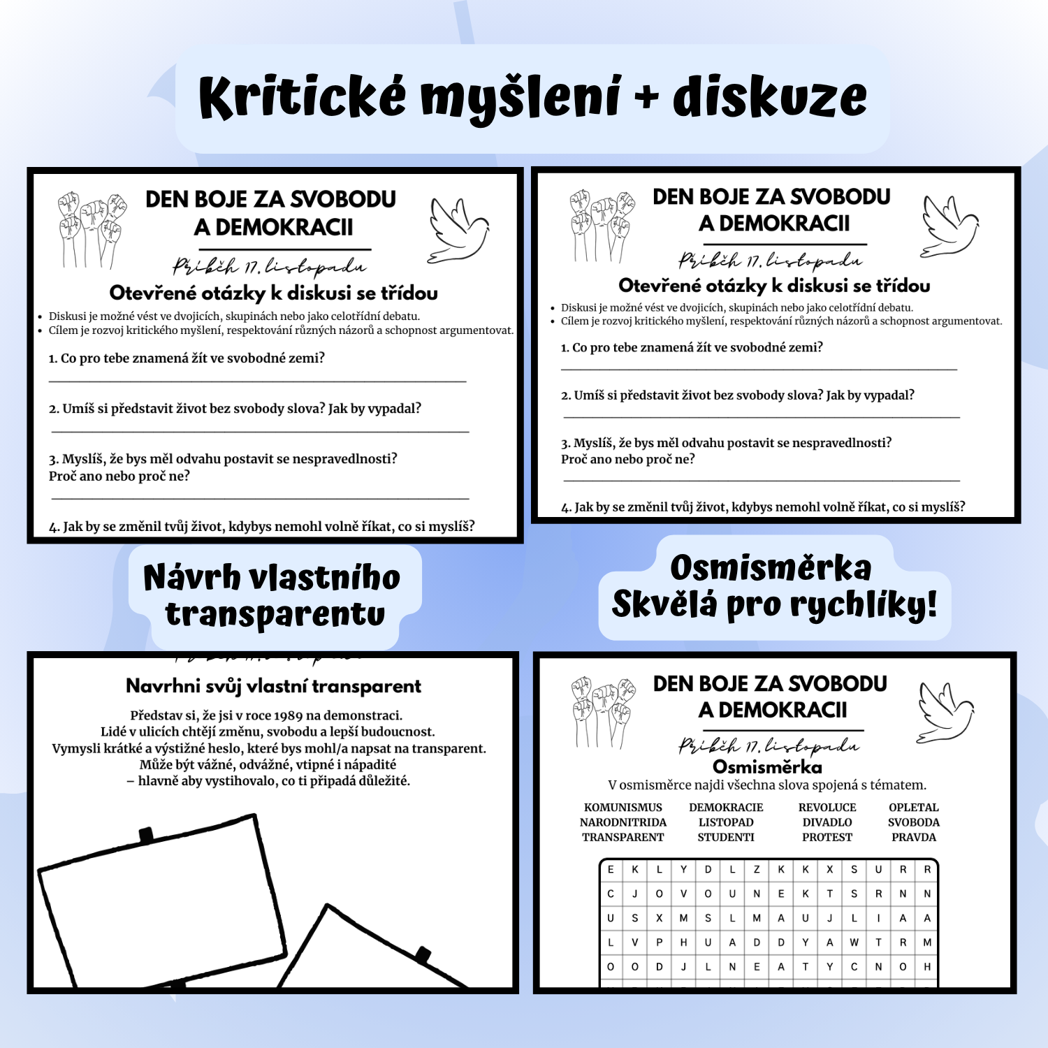- kreativní aktivitu „Můj transparent pro svobodu“