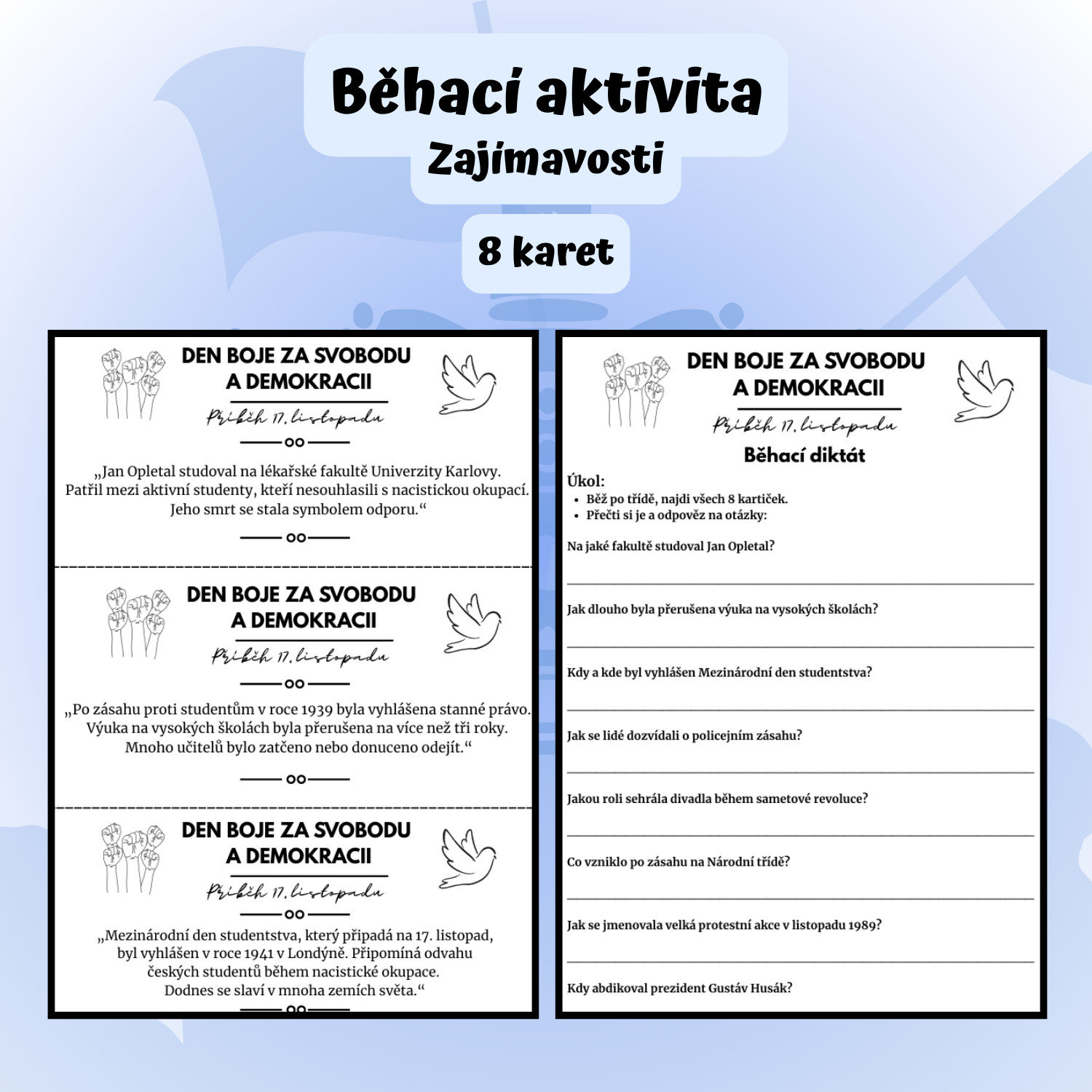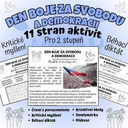 Tento výukový materiál přibližuje žákům 2. stupně události 17. listopadu 1939 a 1989 – dva historické okamžiky, které spojila odvaha studentů a touha po svobodě.