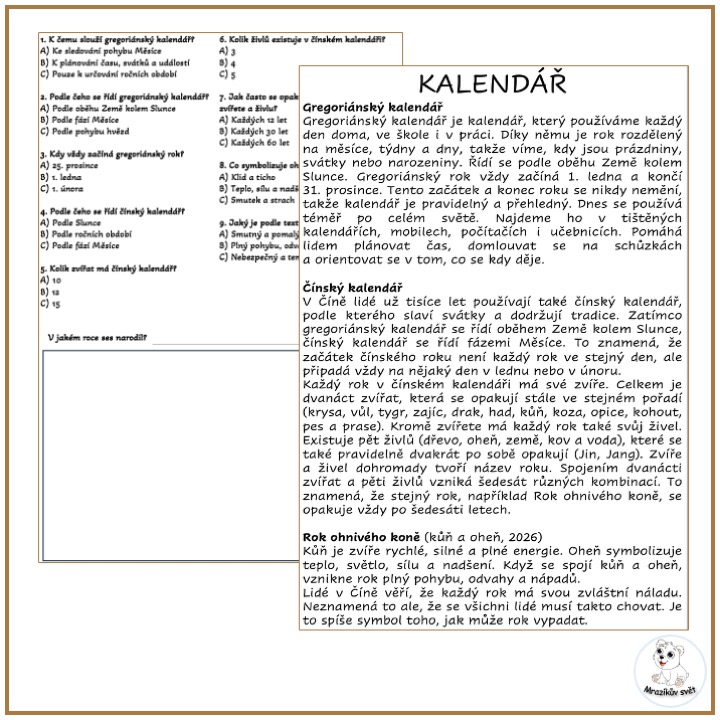 - Zeptejte se dětí, co vědí o gregoriánském a čínském kalendáři.
