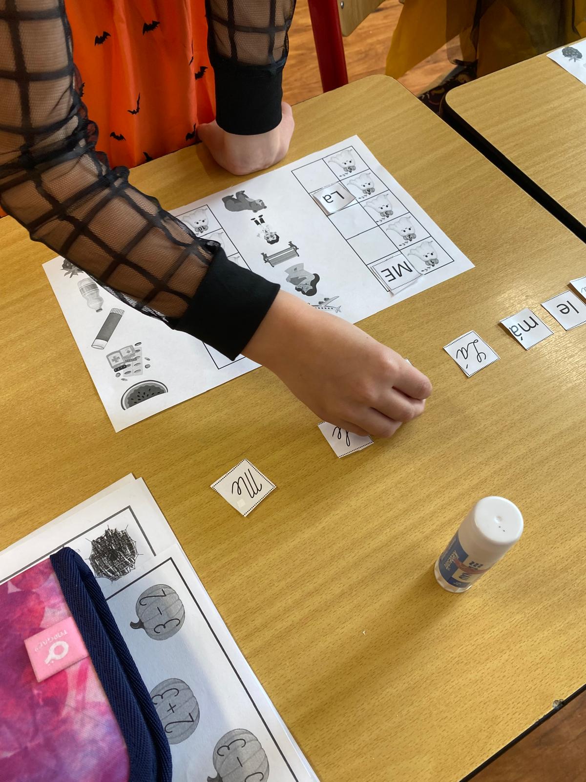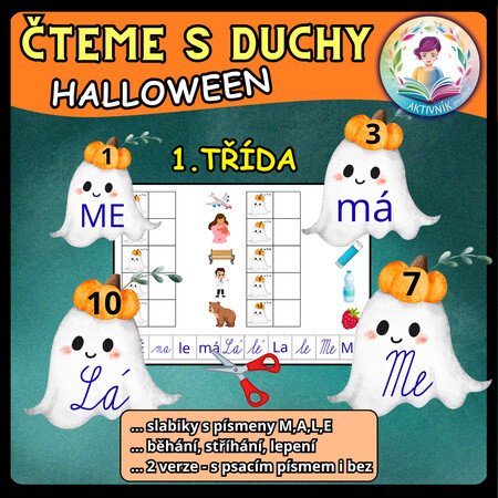 „Halloween – Slabiky s písmeny M, A, L, E“ je hravý vzdělávací materiál pro žáky 1. třídy, který spojuje nácvik čtení slabik s pohybovou aktivitou v duchu Halloweenu. Děti běhají po chodbě, kde jsou rozmístění duchové se slabikami, zapamatují si jejich číslo a slabiku, poté ji správně přiřazují na pracovní list.