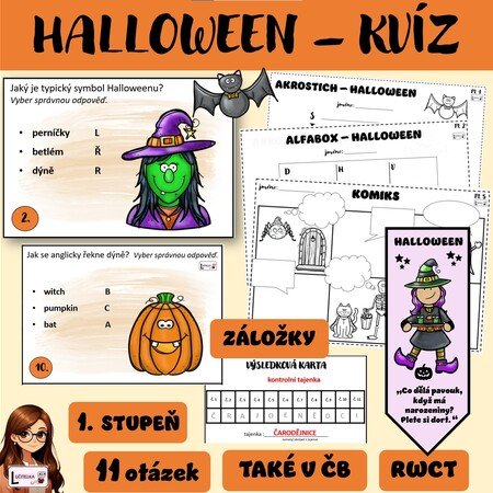Cílem materiálu je procvičit si znalosti o svátku Halloweenu a jeho tradicích. Rozvoj kritického myšlení i tvořivého psaní formou pracovních listů. Materiál lze využít v hodinách českého jazyka/čtení/psaní/ nebo jako součást projektového dne na téma HALLOWEEN.