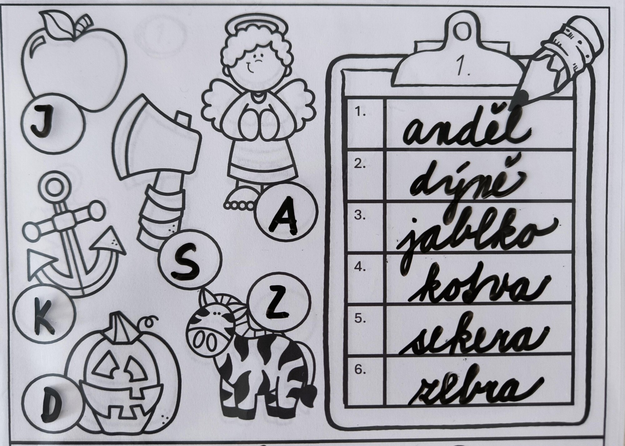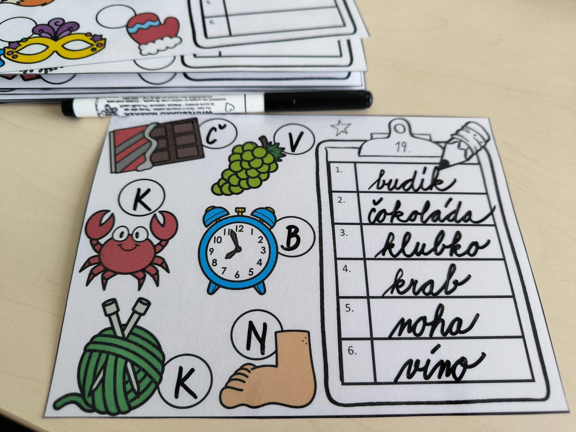Rychlíci mohou ke slovům vymýšlet a psát věty do sešitu. Slabší žáci mohou pracovat společně ve dvojích nebo s dopomocí paní asistentky.