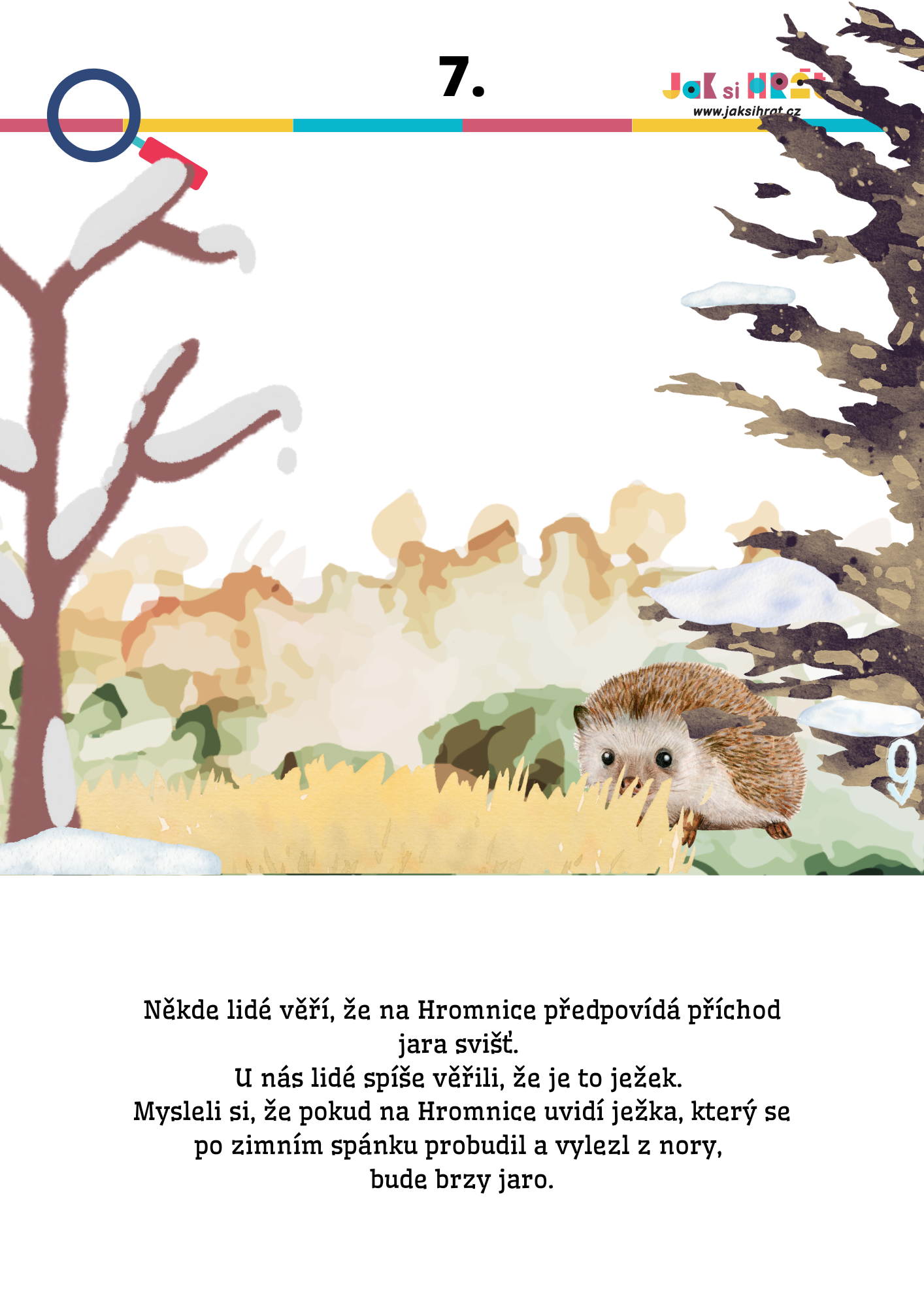 Pracovní listy pro děti ze školky, zabaví se ale i prvňáčci. Obsahují: hádanku, básničku, úkoly na přiřazování barev