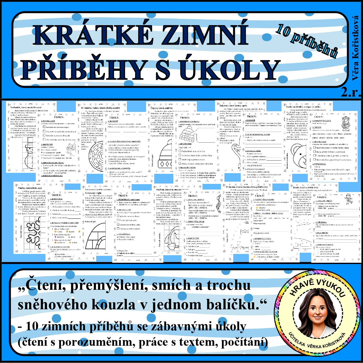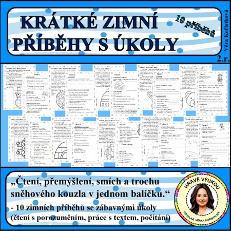 - každá karta = 1 zimní příběh + 1 obrázkový úkol + sada úkolů k porozumění