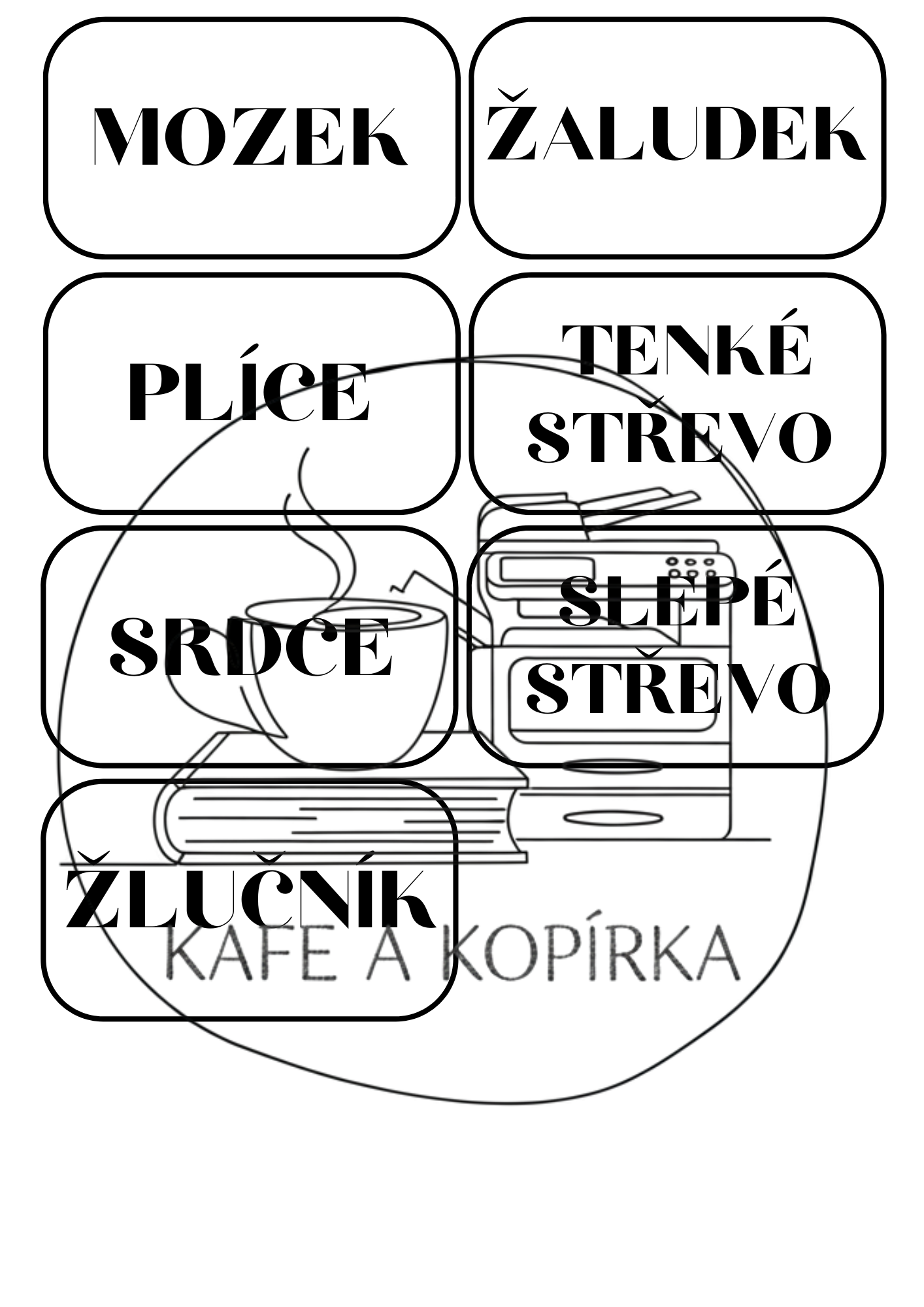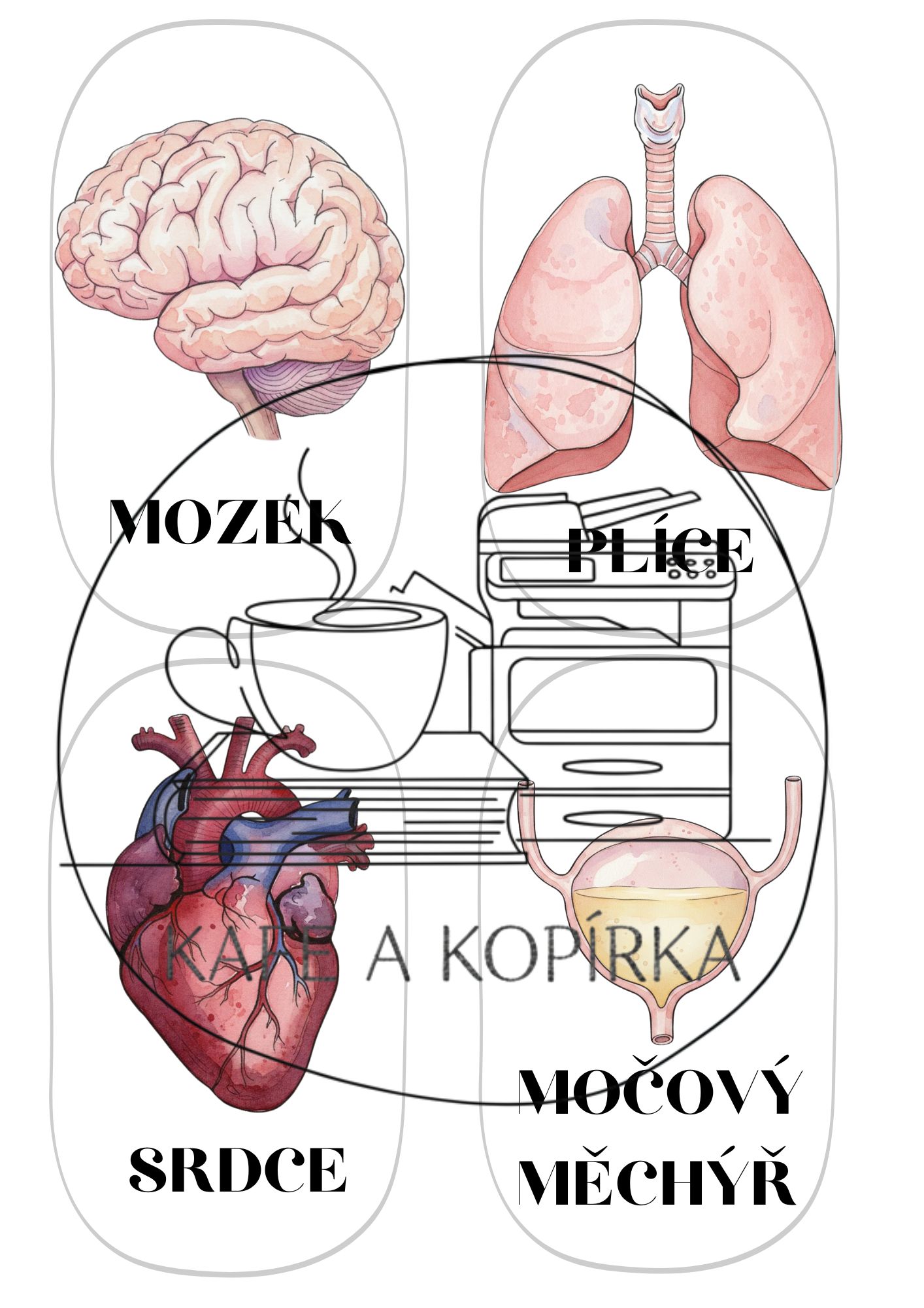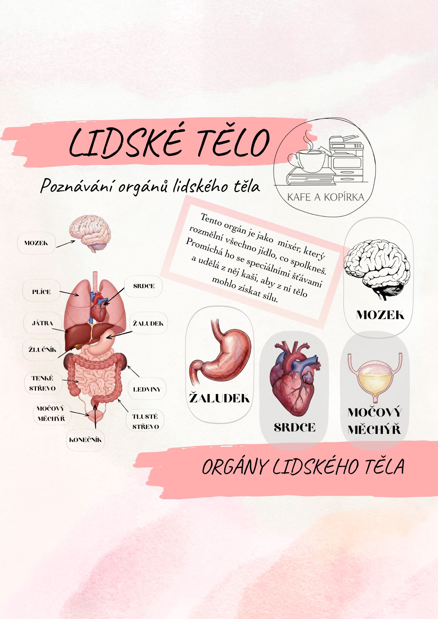 - Demonstrační kartičky: 13 orgánů lidského těla (s popiskem i bez)