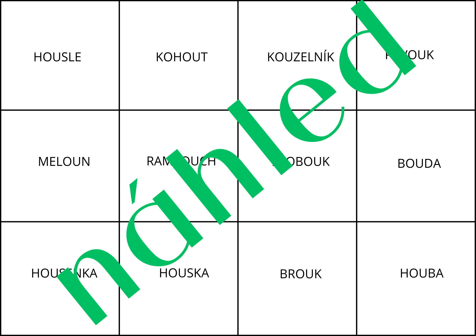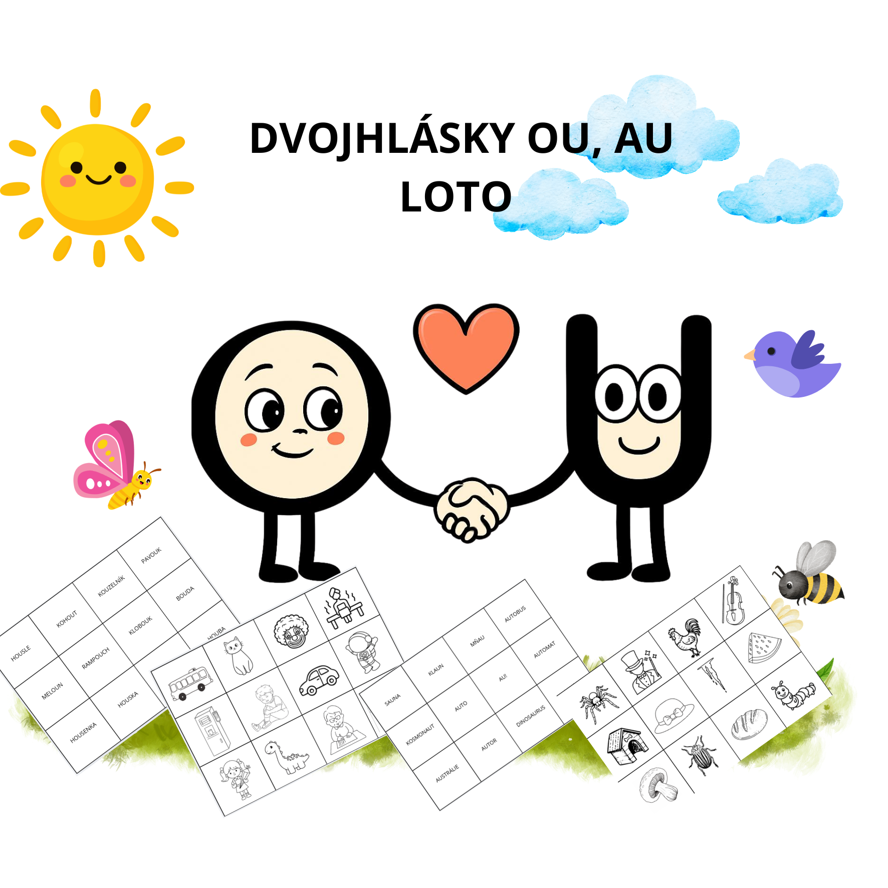 Didaktická hra zaměřená na procvičování a upevnění dvojhlásek ou a au. Soubor obsahuje dvě varianty (samostatně na ou a au), a to v barevném i černobílém provedení.