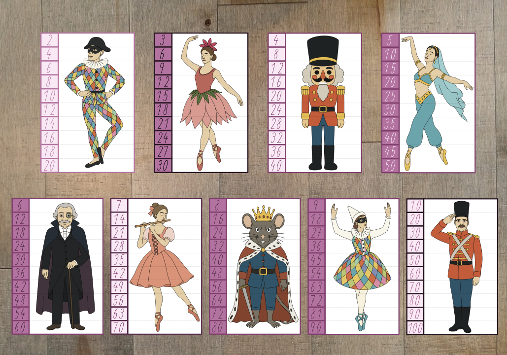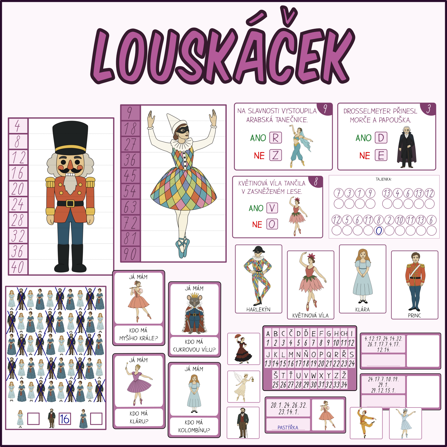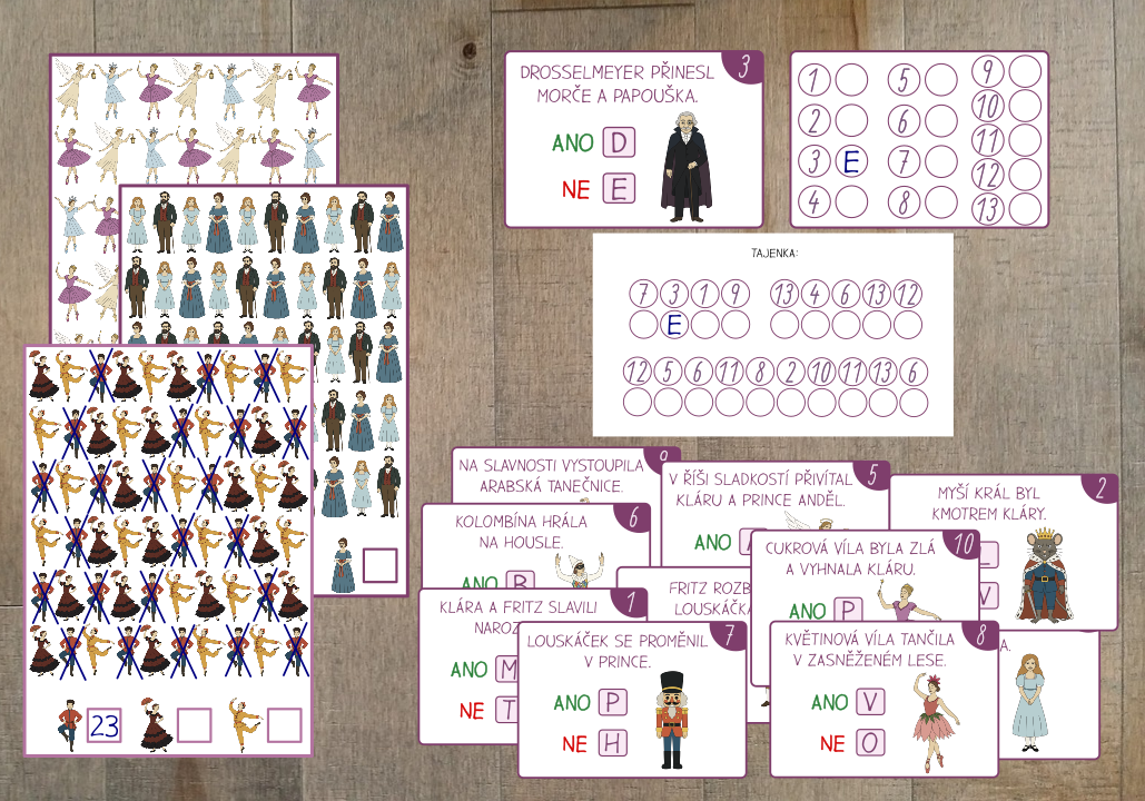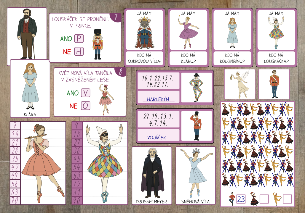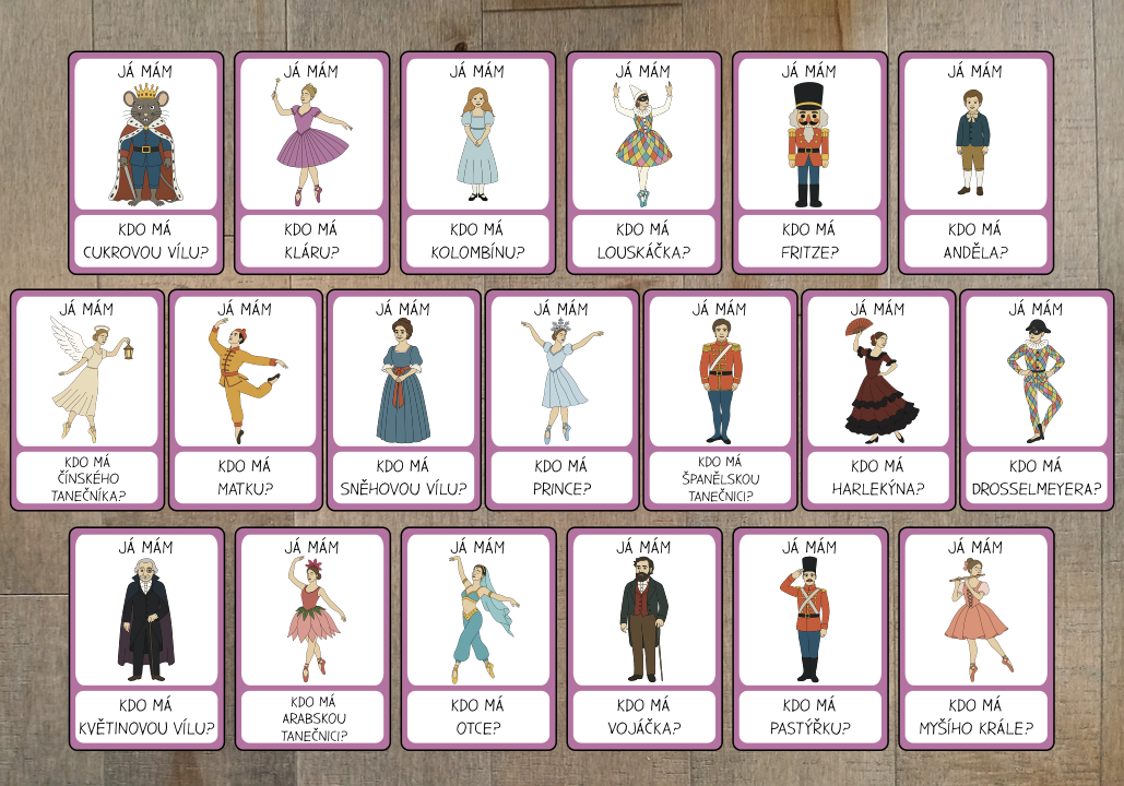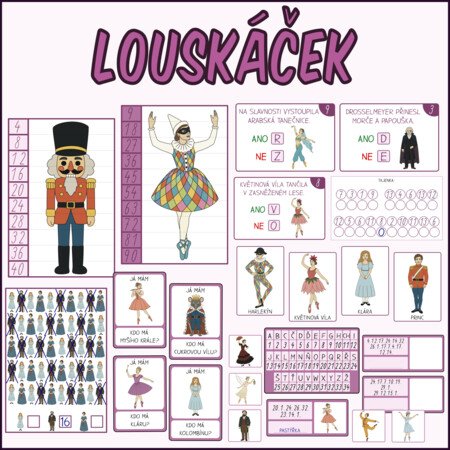 Sada aktivit s 20 postavami z baletu Louskáček, díky které děti snadno poznají 20 hrdinů z příběhu Louskáčka.