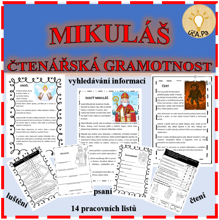Soubor aktivit zaměřených na rozvoj čtenářské gramotnosti a práci s textem na téma Mikuláš. Materiál je určen žákům 3.–5. ročníku a lze jej využít ve výuce podporující porozumění textu a rozvoj čtenářských dovedností.