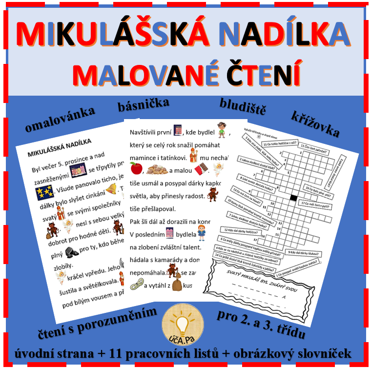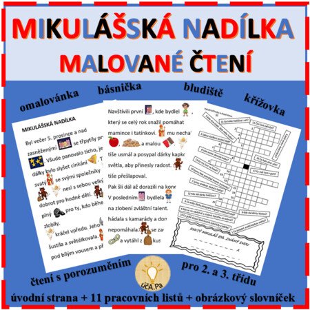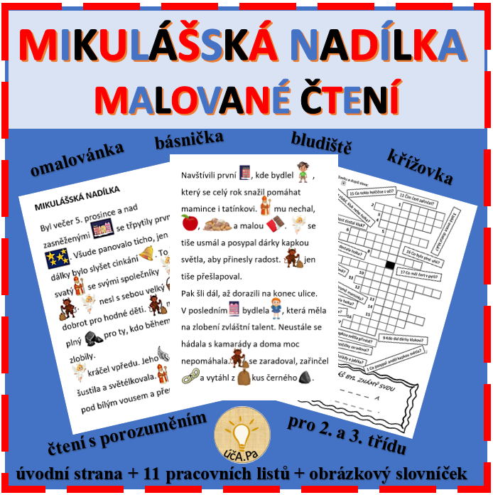 - 11 pracovních listů (autorský text + vyhledávání informací, křížovka, omalovánka, bludiště, básnička)