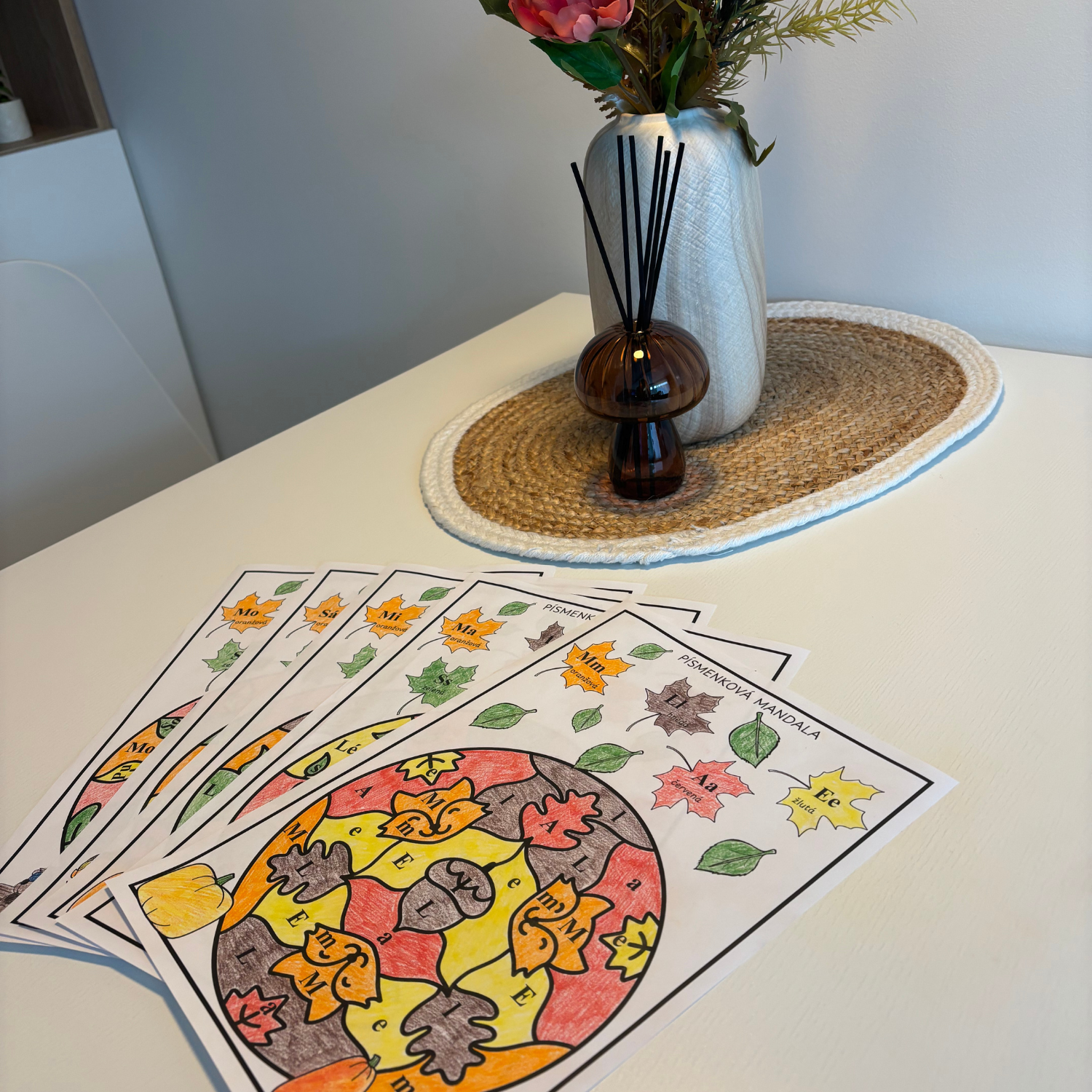 Podzimní písmenové mandaly - písmena M, L, S, P, A, E, O, U, I