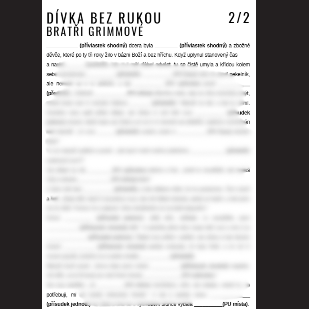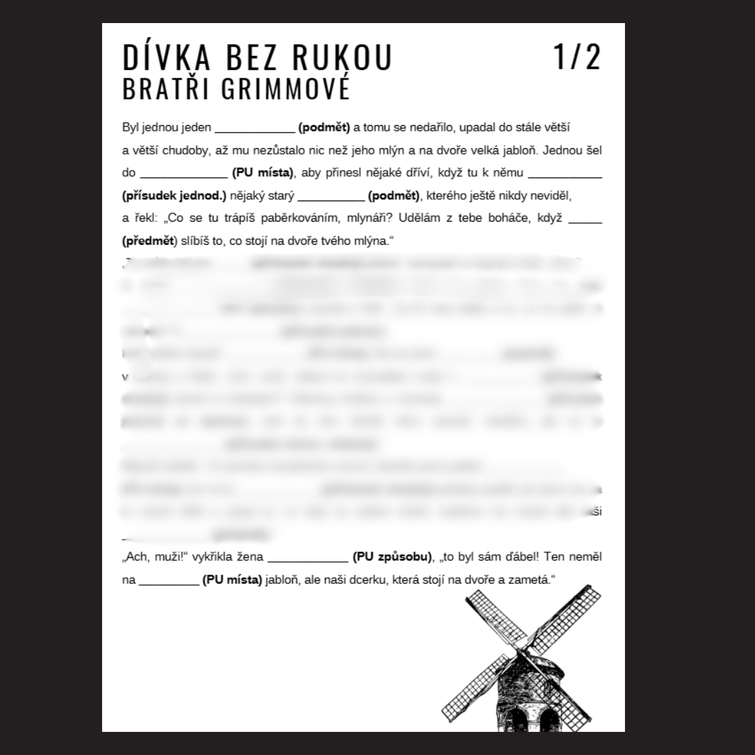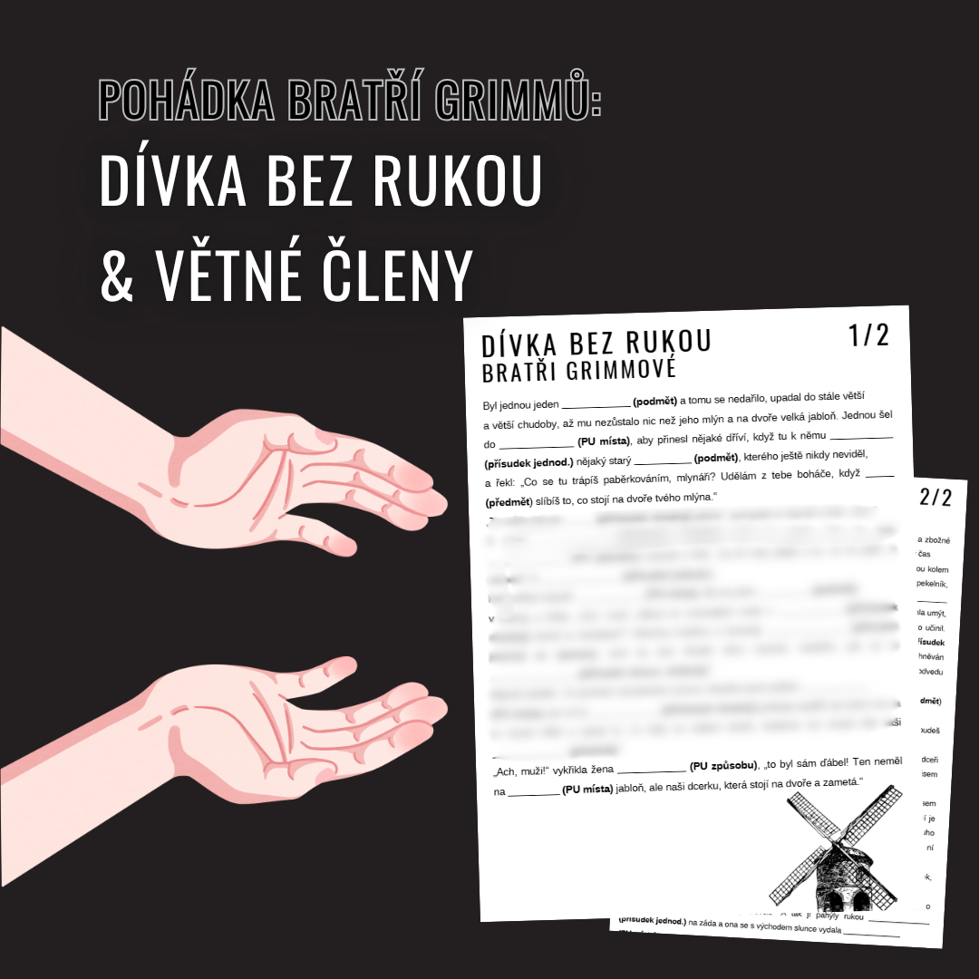 Tento výukový materiál obsahuje úvodní část pohádky Dívka bez rukou od bratří Grimmů. Žáci pracují s upraveným textem, do něhož mají doplnit vhodná slova podle uvedených větných členů v závorkách. Soubor obsahuje aktivitu před pracovním listem, 2 strany pracovního listu, řešení, shrnutý závěr pohádky.