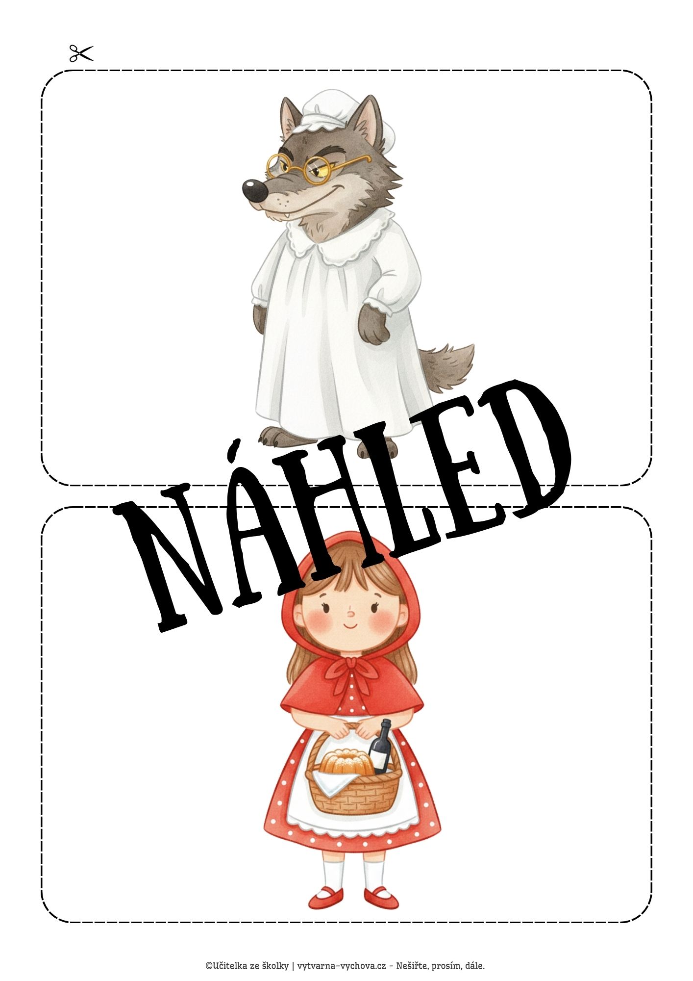- 4. Pohádkové nesmysly: Učitelka záměrně ukáže dvě karty, které k sobě nepatří (např. Karkulku a jahody ve sněhu). Děti musí chybu odhalit, vysvětlit, proč je to nesmysl, a najít ke každému obrázku ten správný.