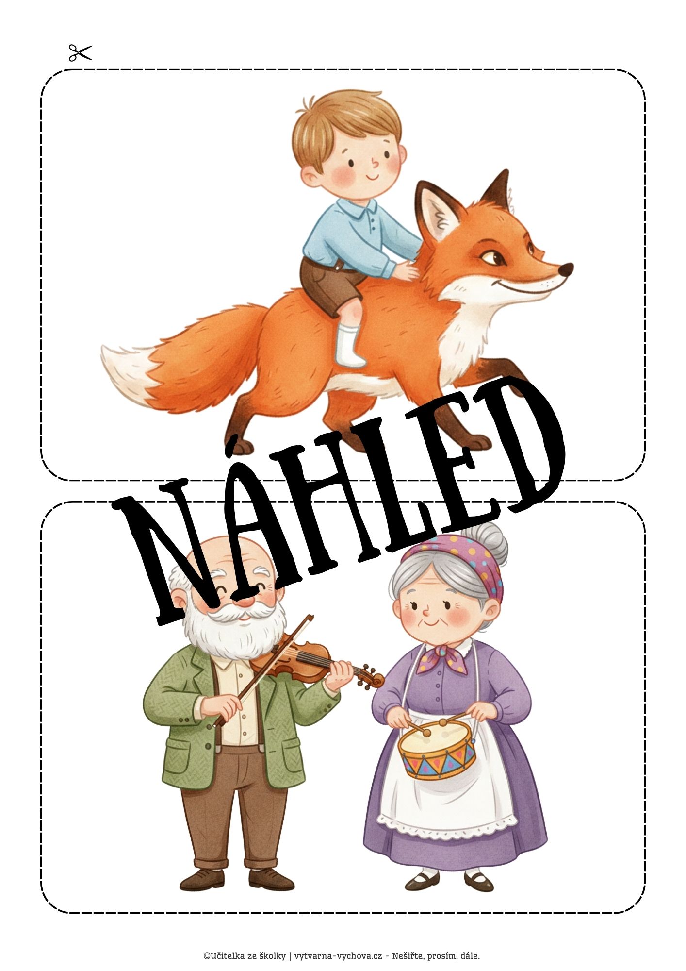 📖Sada 20 ilustrovaných karet k 10 klasickým lidovým pohádkám (každá pohádka =2 karty, které k sobě patří).