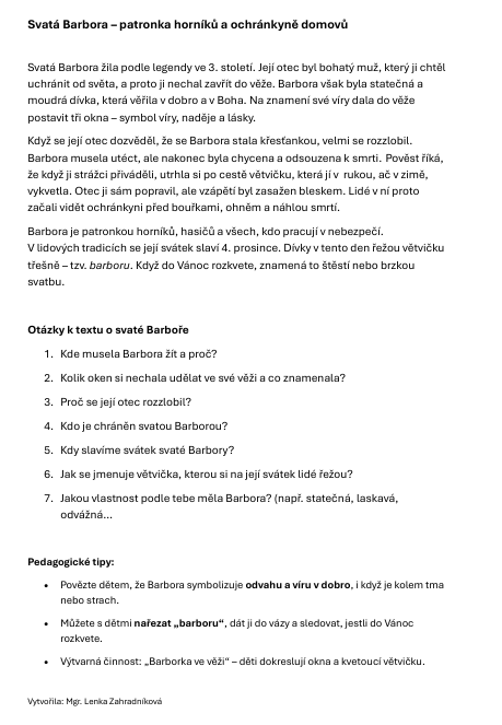Prosinec - sv. Barbora, Mikuláš, sv. Lucie