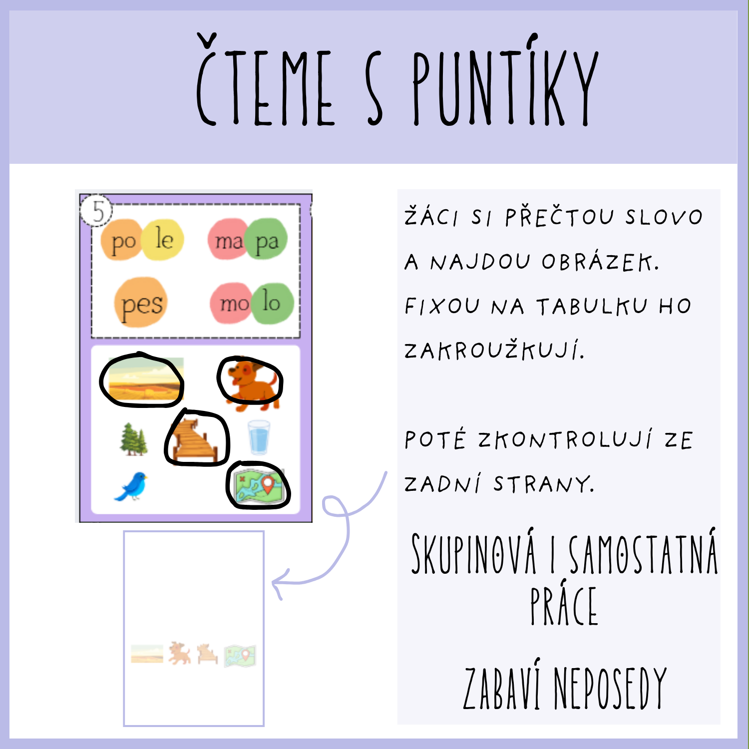 Vhodné do českého jazyka, ranního čtení, individuální práce, stanovišť nebo jako pomocník pro žáky, kteří potřebují více podpory.