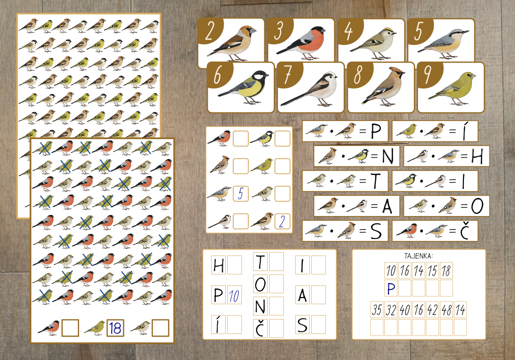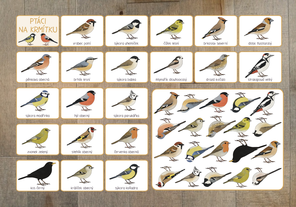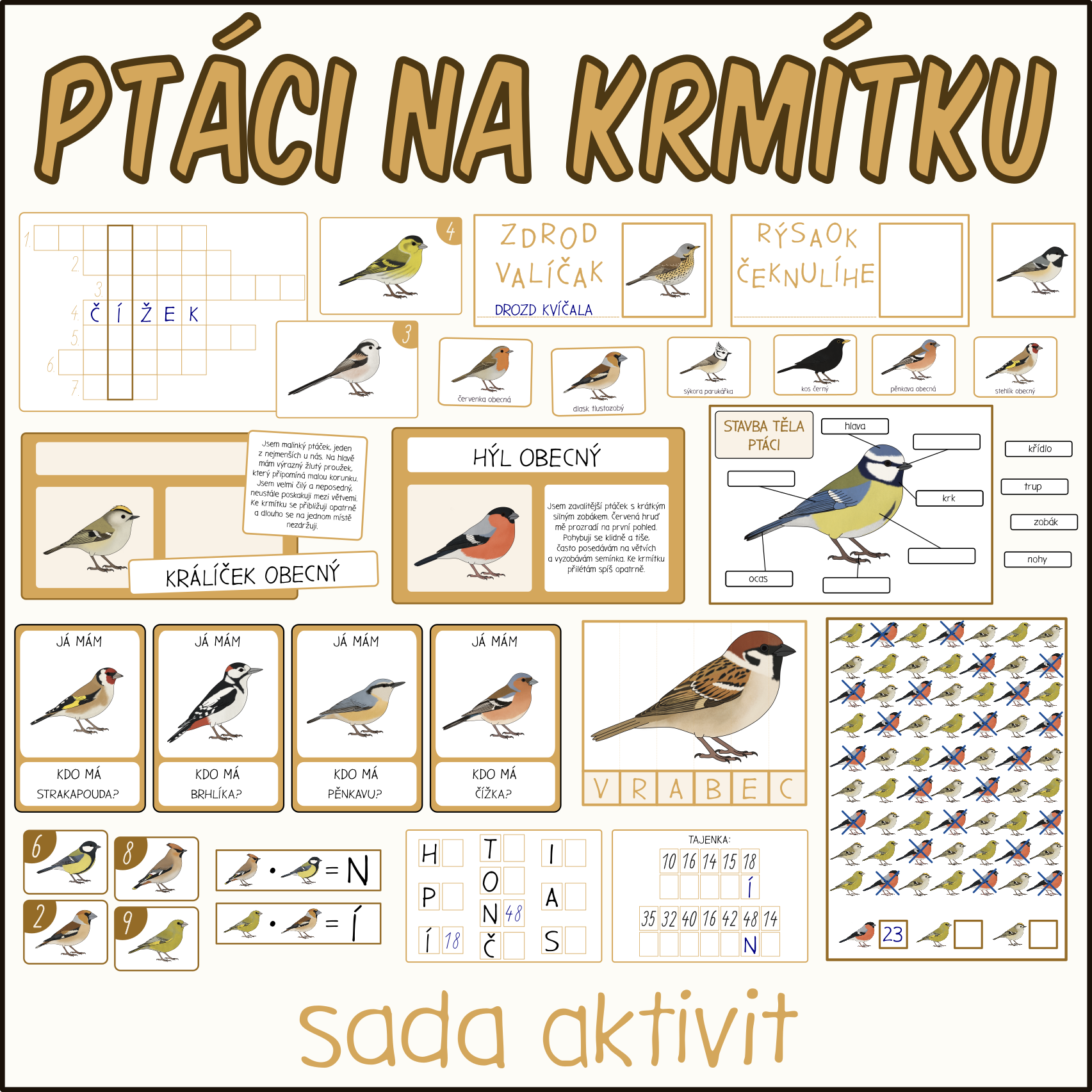 Aktivity zaměřené na ptáky, kteří v zimě přilétají ke krmítku a které mohou děti běžně pozorovat. Celkem 20 názorných obrázků ptáků a 8 aktivit.