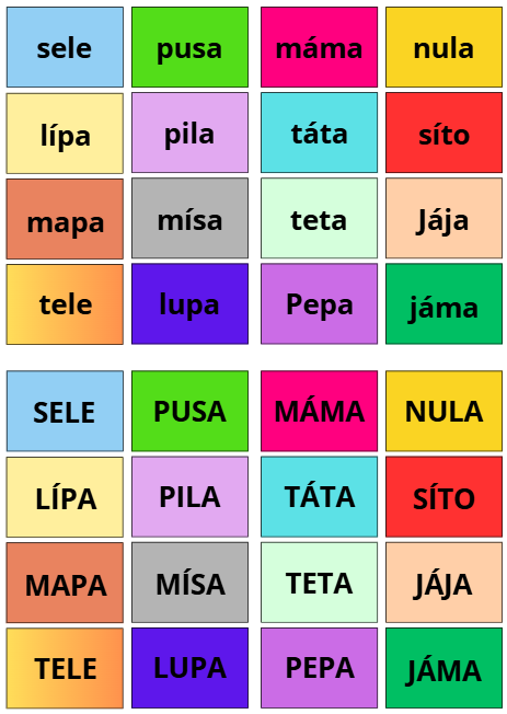 Druhý úkol: Děti hledají stejná slova vyhotovena ve variantách s velkými a malými písmeny.