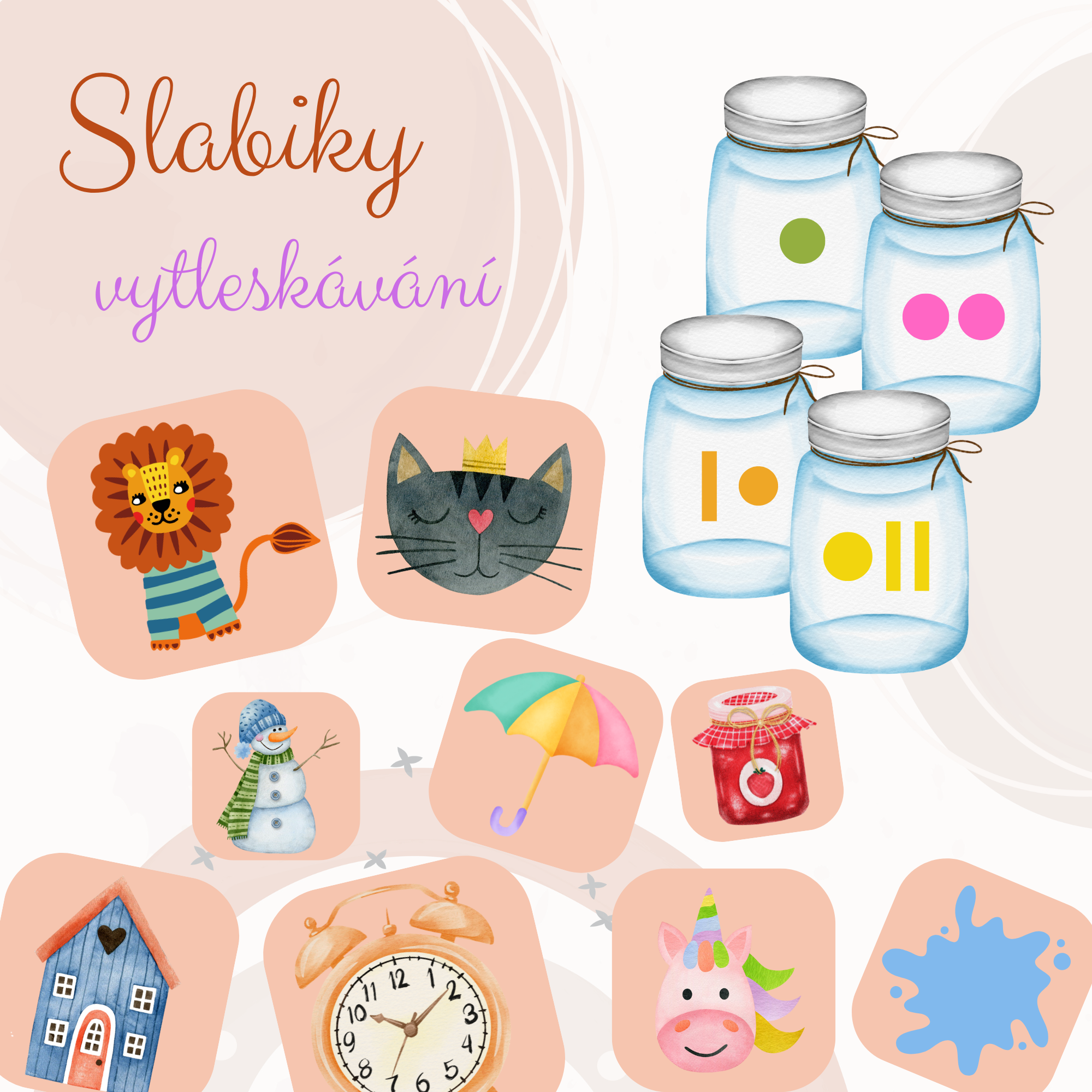 Dítě si vylosuje kartičku, vytleská slabiky a přiřadí ke správné sklenici dle počtu slabik. Starší děti mohou určovat i krátké a dlouhé slabiky. Tip - vystřižené sklenice přilepte na kelímek či jinou nádobu a děti mohou obrázky do sklenice vhazovat.