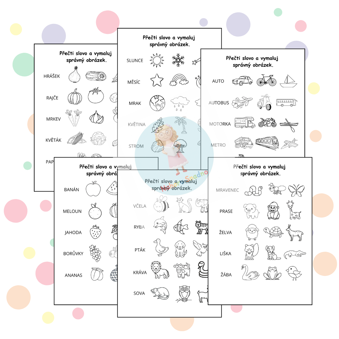 Soubor Slovíčka a obrázky je praktická a osvědčená pomůcka určená pro rozvoj čtenářských dovedností u malých dětí. Jeho hlavním cílem je nabídnout jednoduchý, srozumitelný a zároveň zábavný způsob, jak procvičovat čtení a porozumění textu prostřednictvím práce se slovy a obrázky.