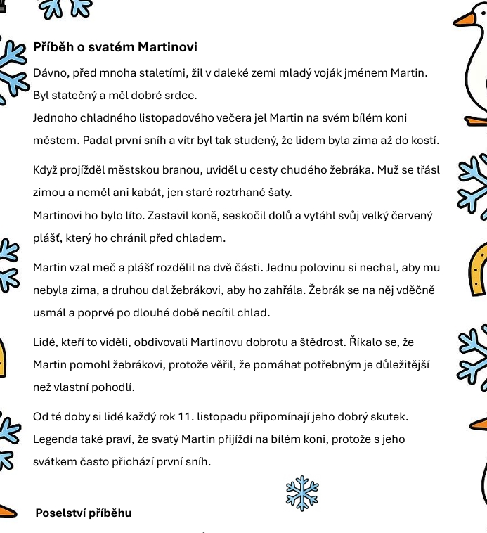 Připravila jsem pro vás soubor aktivit k tématu Svatý Martin.